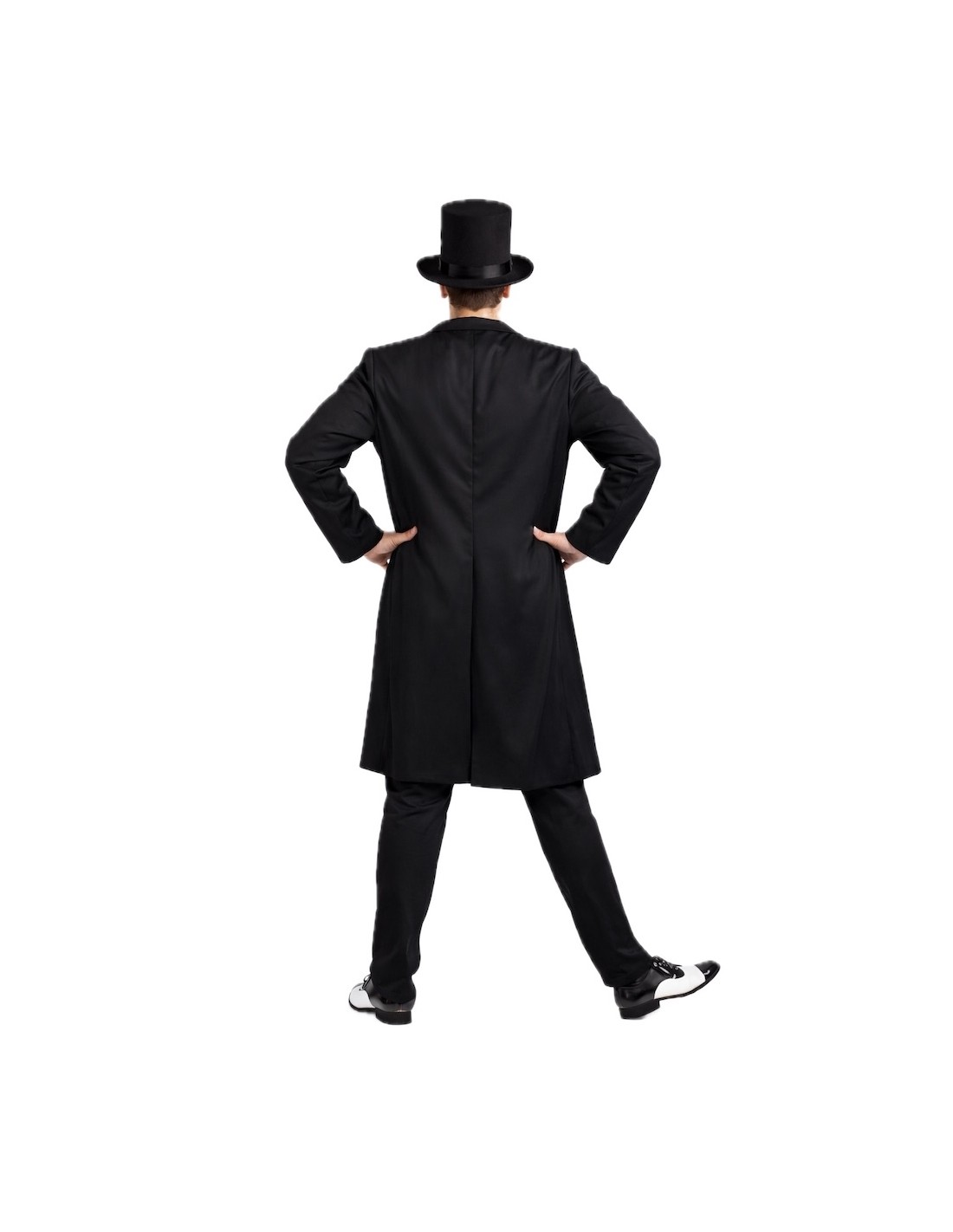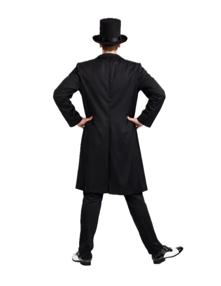 Overall aus weichem, halbelastischem Maschenstoff mit unsichtbarem Reißverschluss am Rücken und unsichtbarem Reißverschluss im Schritt für mehr Komfort. Der Overall hat ein Skelett, das in den Stoff gedruckt ist (nicht fluoreszierend) und keine Ärmel hat. Dazu gehört ein langer Frackmantel mit einer falschen Tasche vorne, die mit einem Stück Fuchsia verziert ist und aus dichtem Polyester gefertigt ist. Der Mantel wird vorne mit Klettverschluss geschlossen. Das Set wird durch eine maschinengestrickte, gefütterte Mütze vervollständigt, um die Struktur zu erhalten und Verformungen zu vermeiden. Außerdem ist, obwohl es nicht auf dem Foto zu sehen ist, ein Gürtel mit einer Karavellen-Print enthalten, der mit einem Klettverschlusssystem verstellbar ist, um ihn mit oder ohne Anzug tragen zu können.