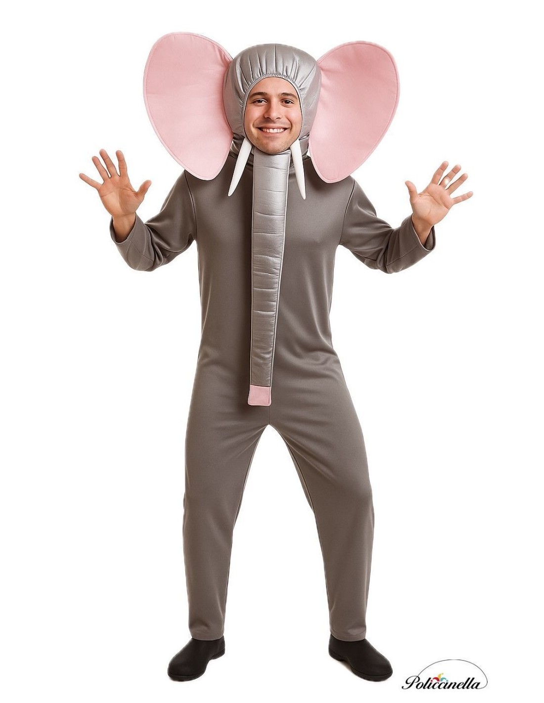 Süßes und originelles Elefantenkostüm: Bestehend aus einem Ganzkörperanzug aus weichem, halbelastischem Material, mit verstecktem Reißverschluss vorne für mehr Komfort. Die Kapuze verfügt über formstabile, voluminöse Schaumstoffohren. Am Hals werden die Stoßzähne und der Rüssel mit Klettverschlüssen befestigt, beide sind gefüllt für eine strukturierte und realistische Optik. Der Rüssel aus Satin passt zu den Ohren, während die Stoßzähne aus weißem Kunststoff einen attraktiven Lackeffekt haben.