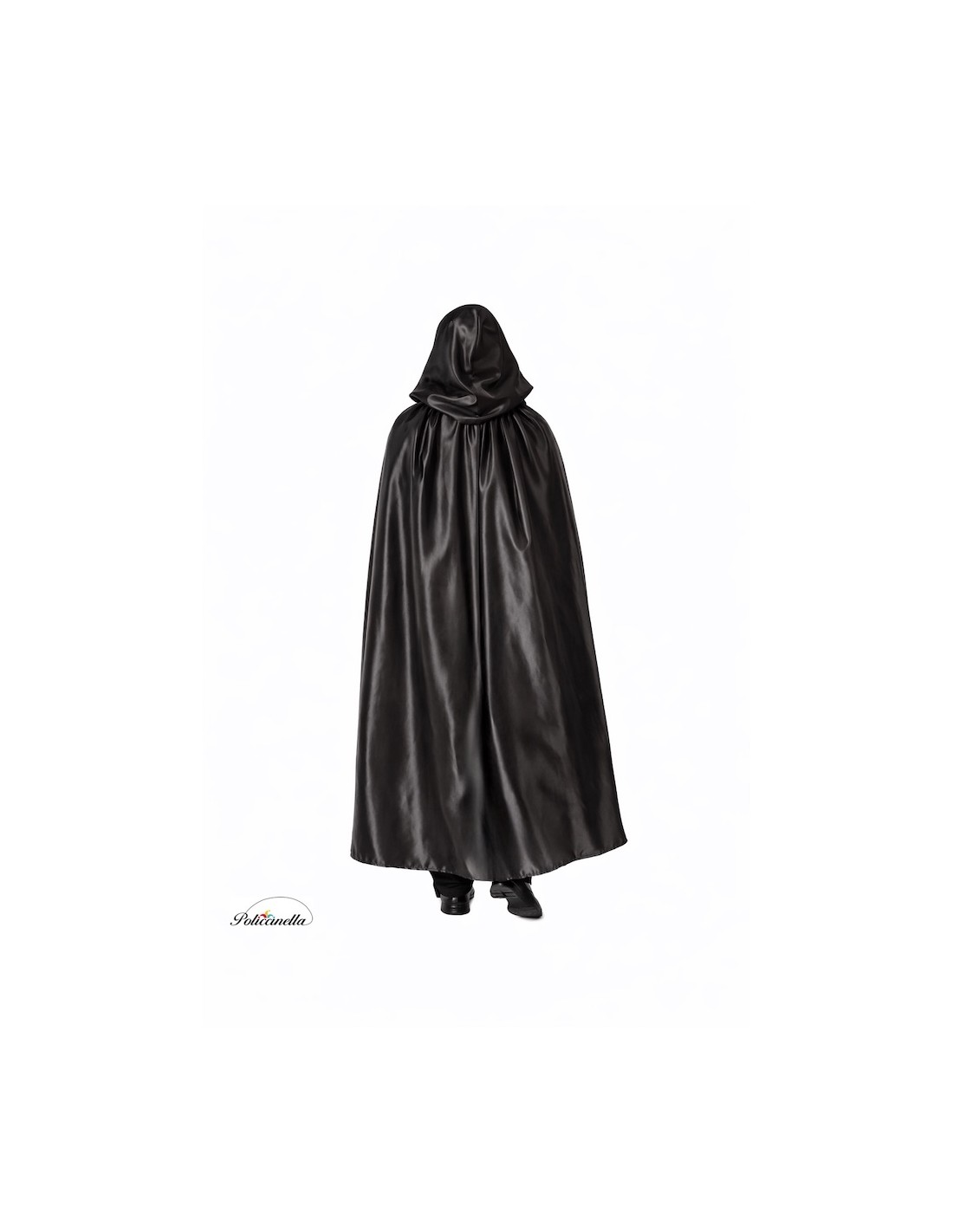 Langer Umhang mit integrierter Kapuze, hergestellt aus dichtem, schwerem Satin mit hohem Fall. Der geraffte Kragen mit funktioneller Schleife verleiht Volumen und Betonung des Designs, verbessert die Bewegung des Kleidungsstücks. Enthält eine passende Augenbinde mit elastischem Band für eine bequeme und sichere Passform. Die Kapuze ist strukturell mit dem Umhang verbunden und bietet einen umhüllenden und ästhetischen Verschluss. Ideal als Ergänzung für Kostüme aus vergangenen Zeiten, Fantasy-Kostüme oder maskierte Charaktere.