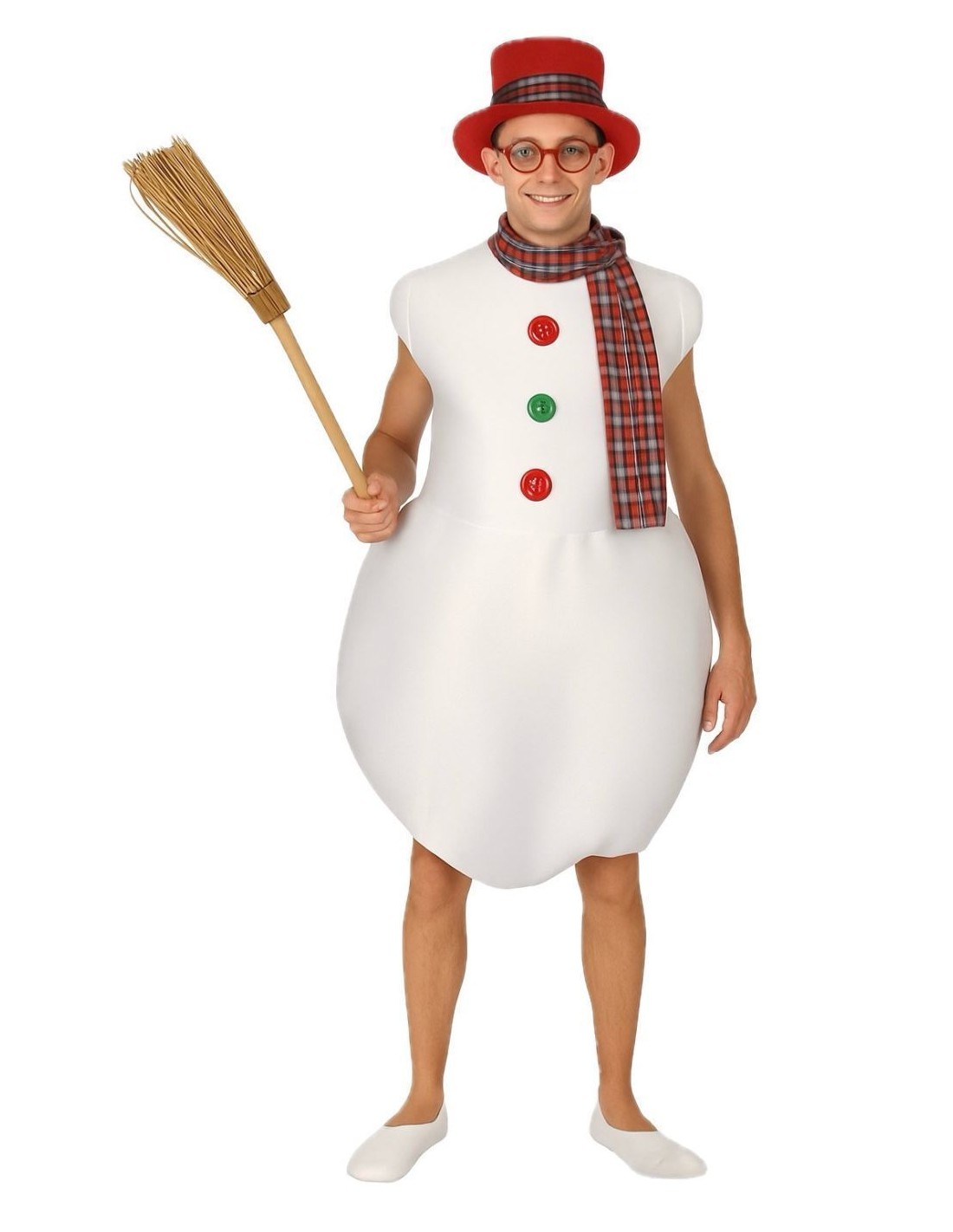 Ganzkörperanzug aus geschäumtem Polyester, der Struktur und Volumen verleiht, mit Reißverschluss hinten und seitlichen Armöffnungen. Verziert vorne mit drei großen Knöpfen, inklusive klassischer Hut passend mit dekorativem Band und dem charakteristischen Schal aus weichem Polyester. Das Set wird mit einer sympathischen gepolsterten Nase mit Innenfüllung vervollständigt, die ihre Form behält und bequem mit einem dünnen Gummiband befestigt wird. Ideal für Weihnachtsveranstaltungen, Animationen und Winterveranstaltungen. Ein Kostüm, das Groß und Klein begeistert!