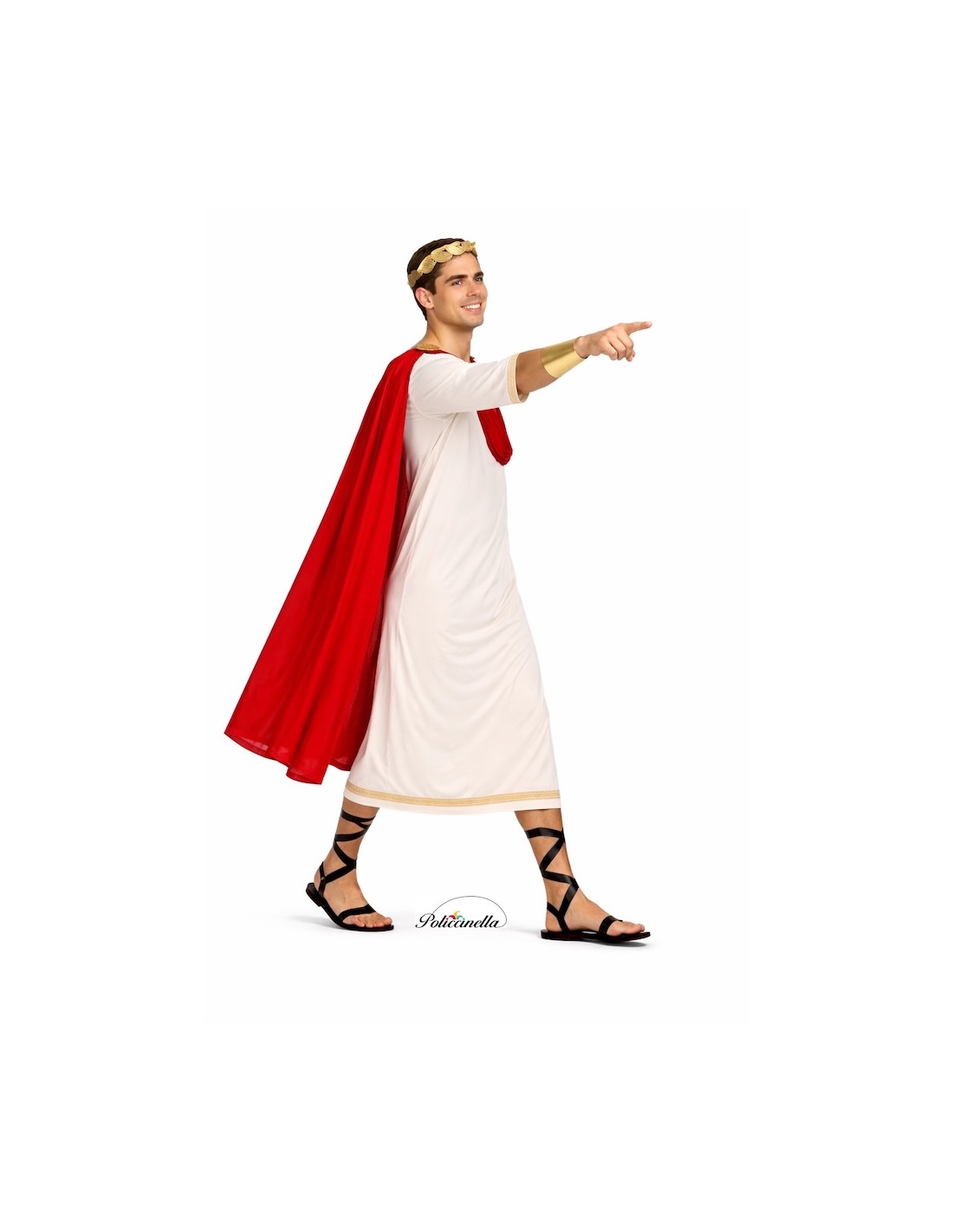 Ägyptisches Kleidungsstück vom Typ Kalasiris, hergestellt aus halbelastischem Maschenstoff, mit einem Verschluss am Nacken hinten durch Klettverschluss. Es hat eine Verzierung auf der Vorderseite mit einem Band mit Hieroglyphenmotiven und Schulterklappen mit goldfarbenen, schaumstoffbeschichteten Applikationen, die mit ornamentalen Plaketten verziert sind. Das Kleidungsstück wird durch einen über den Schultern integrierten Umhang ergänzt, der aus dem gleichen Stoff gefertigt ist, strukturell verbunden, aber separat, was dem Gesamtbild Dimension und Aufwertung verleiht.