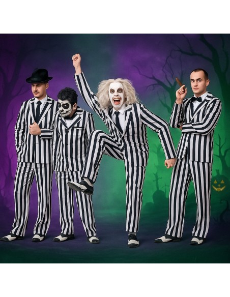 Vielseitig und elegant, dieses Kostüm mit Streifenanzug für Männer ermöglicht es Ihnen, sich in Charaktere wie den berühmten Filmcharakter der 80er Jahre mit seinem unverwechselbaren Streifenanzug zu verwandeln; in den Vater eines unheimlichen Mädchens; in einen Gangster der 20er Jahre oder in einen extravaganten Bösewicht.