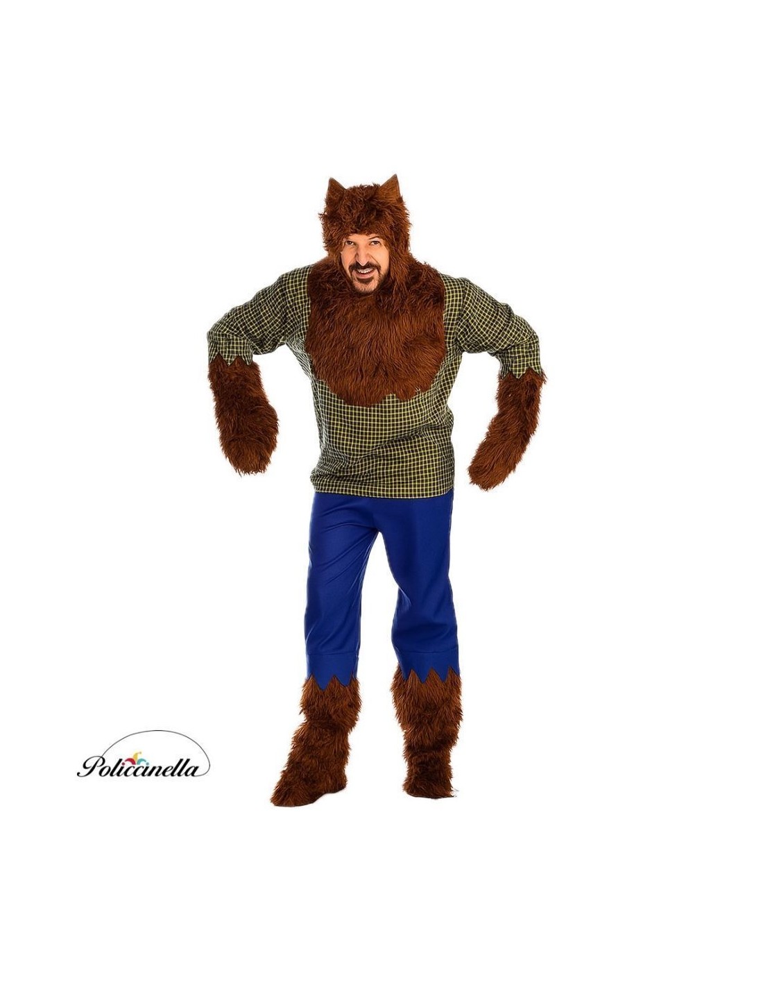 Dieses klassische Kostüm besteht aus einem weiten, langen Hemd aus Polyester, das wie Flanell aussieht. Der Verschluss am Kragen erfolgt auf der Rückseite mit Klettverschluss. Die Ärmel sind mit gestrickten Handschuhen und Kunstfell versehen, ebenso wie die Brust und der Overall, die das Kostüm ausmachen. Der untere Teil besteht aus einer Hose mit Gummizug in der Taille und einer kleinen Innentasche. Sie ist aus dichtem Polyester mit Kunstfell gefertigt, das die Waden und Füße bedeckt, und mit einem elastischen Band für besseren Halt und Komfort abgeschlossen.