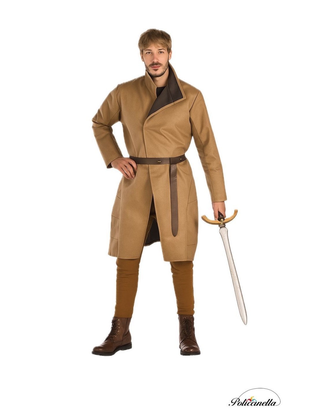 Dieses beeindruckende mittelalterliche Gewand für Erwachsene ist ideal, um dich in die Zeit der Ritter und Burgen zu versetzen. Hergestellt aus einem samtig-weichen Stoff auf einem dichten Filter, bietet das Gewand eine robuste Struktur, die seine elegante und authentische Form hervorhebt. Der vordere Verschluss, der durch ein praktisches Klettverschlusssystem erfolgt, garantiert ein einfaches Anziehen und eine bequeme Passform. Das Set wird mit einem Ledergürtel komplettiert, der mit bronzenen Elementen verziert ist und dem Outfit einen unverwechselbaren mittelalterlichen Touch verleiht. Perfekt für thematische Partys, historische Veranstaltungen; dieses Kostüm vereint Qualität und Stil und ermöglicht es dir, einen edlen Krieger mit großer Realitätsnähe zu verkörpern.