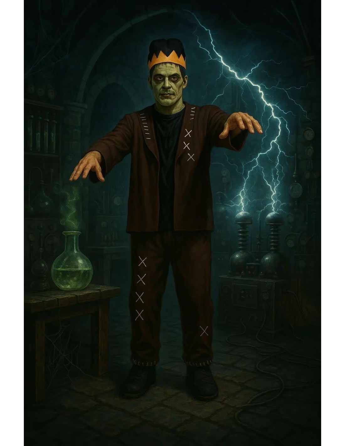 Ein beeindruckendes Kostüm, das durch sein Realismus und Komfort besticht. Es beinhaltet eine Hose und eine gerade geschnittene Jacke mit integrierten Flicken, hergestellt aus einem weichen Stoff mit samtigem Griff. Das ärmellose schwarze Satinhemd mit Halsverschluss verleiht dem Ensemble einen eleganten Touch. Abgerundet wird das Outfit mit einer Mützenperücke, um die ikonische Figur nachzustellen, und Schuhüberzügen aus geschäumtem Stoff, die Stabilität bieten und Verformungen verhindern. Perfekt für Halloween, thematische Veranstaltungen oder Aufführungen, bietet dieses Kostüm eine bequeme Passform und hohe Haltbarkeit, ideal, um bei jeder Gelegenheit Eindruck zu hinterlassen.