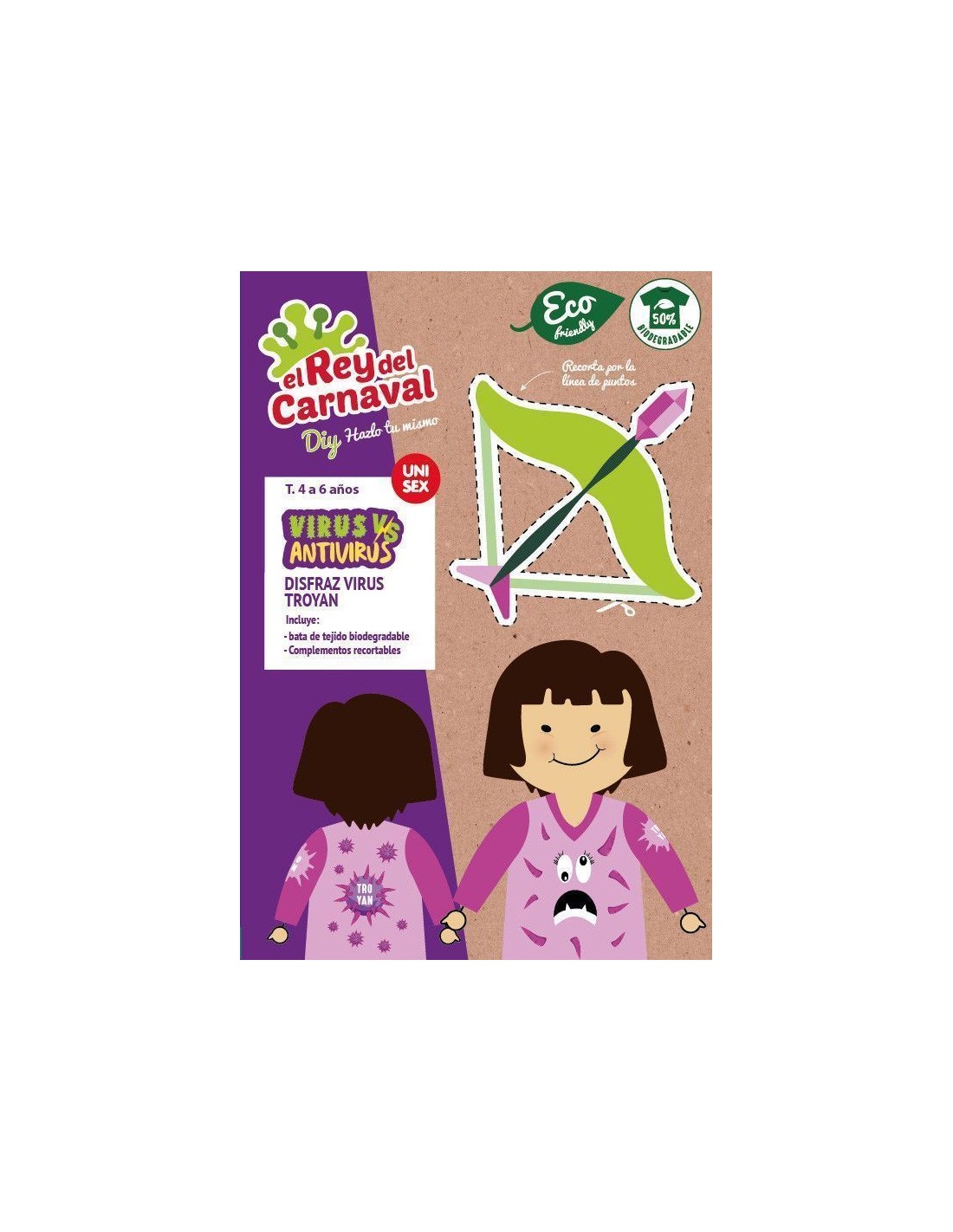 In diesem umweltfreundlichen Umschlag findest du ein originelles Set für Bastelarbeiten und DIY-Kinderkostüm des Trojanischen Virus, empfohlen für Kinder von 4 bis 6 Jahren. Es enthält einen rosa Kittel aus weichem, strapazierfähigem und sehr bequemem Stoff, verziert mit einem auffälligen digitalen Druck eines Virus in lebendigen Farben. Der Umschlag selbst enthält die ausschneidbaren Accessoires, die die Kinder leicht zusammenbauen können, um das Erlebnis in ein kreatives und unterhaltsames Spiel zu verwandeln. Ein 3-in-1-Spielzeug: Basteln, Verkleiden und Unterhaltung, perfekt für Karneval, Themenpartys, Geburtstage oder Spiele zu Hause. Spaß ist garantiert, während sie ihre Fantasie entwickeln!