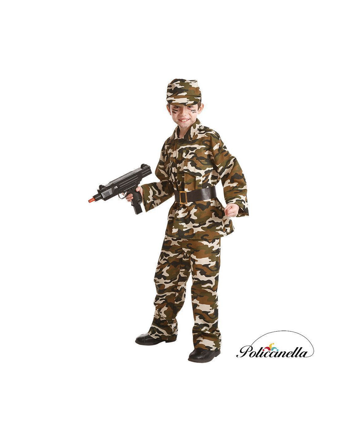 Dieser Anzug, bestehend aus vier Teilen, wird in einem resistenten, aber weichen Polyester mit gewacher Wirkung hergestellt und hat einen geraden Schnitt. Die Jacke schließt mit Knöpfen und hat zwei große Taschen (die nicht falsch sind) bei der Brusthöhe. Die Hose mit Gummi zur Taille hat eine kleine Innentasche. Das Set ist mit einem Hut des gleichen Gewebes als der Rest des Anzugs geschlossen. Und ein schwarzer Gürtel, der in Polyester auf Filtergewebe hergestellt ist, simulierende Leder- und metallische Schnalle.