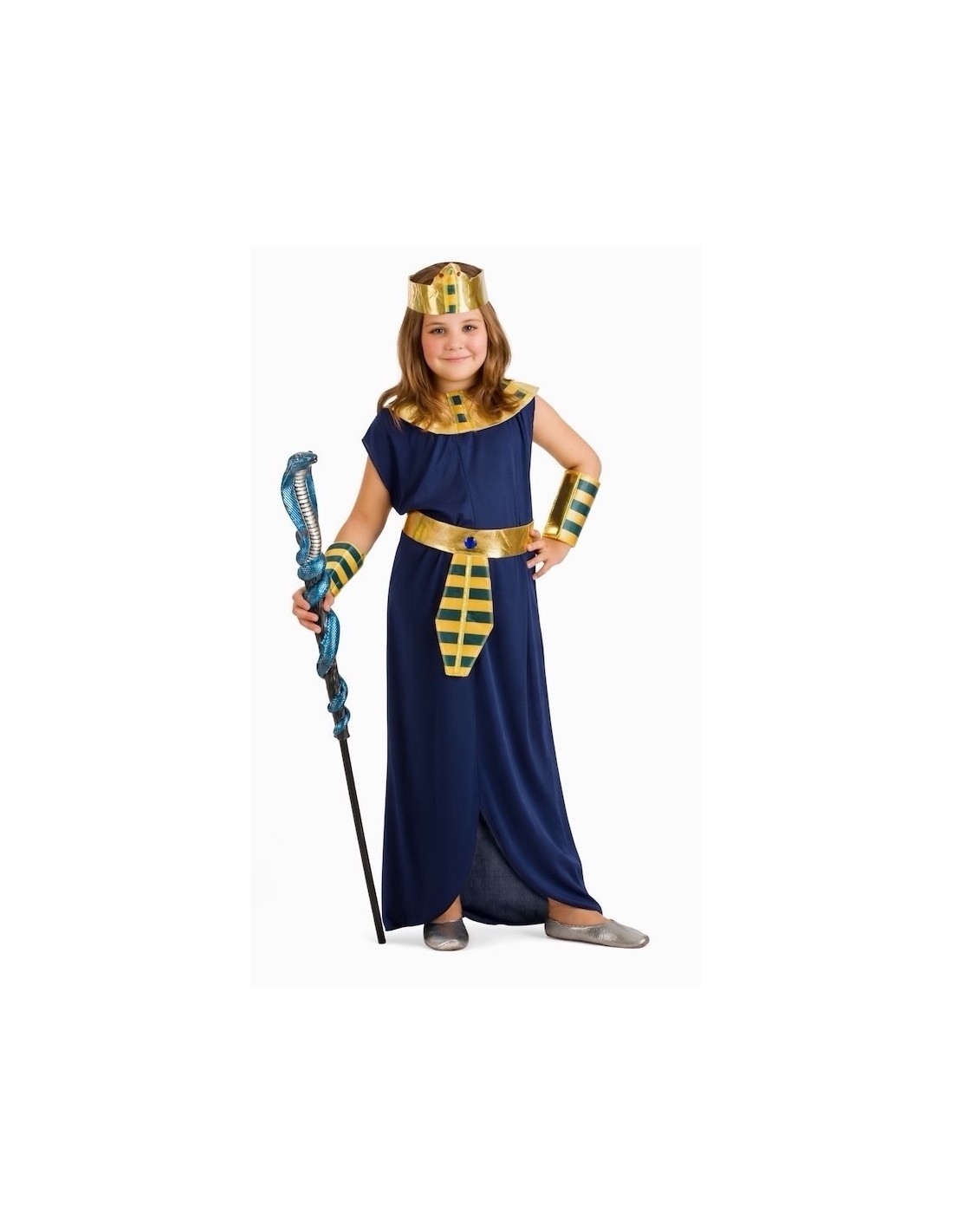 Dieses ägyptische Kostüm ruft die Größe des alten Ägypten mit einer hochwertigen und eleganten Verarbeitung hervor. Das ärmellose Kleid mit geradem Schnitt wird am Hals mit einem Klettverschluss auf der Rückseite für mehr Komfort befestigt. Es wird von einem kompletten Satz von golden schaumstoffigen Accessoires begleitet - Halsband, Gürtel, Handgelenkstulpen und Krone - die Körper und Struktur verleihen, mit Verzierungen aus Kunststeinen für ein majestätisches Finish. Der Schmuck des Kostüms sind genau diese schaumstoffigen Accessoires, die die königliche Haltung betonen und das Kleid in ein königliches Gewand verwandeln. Ein bequemer, robuster und auffälliger Satz, ideal für Karneval, Themenpartys oder historische Darstellungen voller Pracht.
