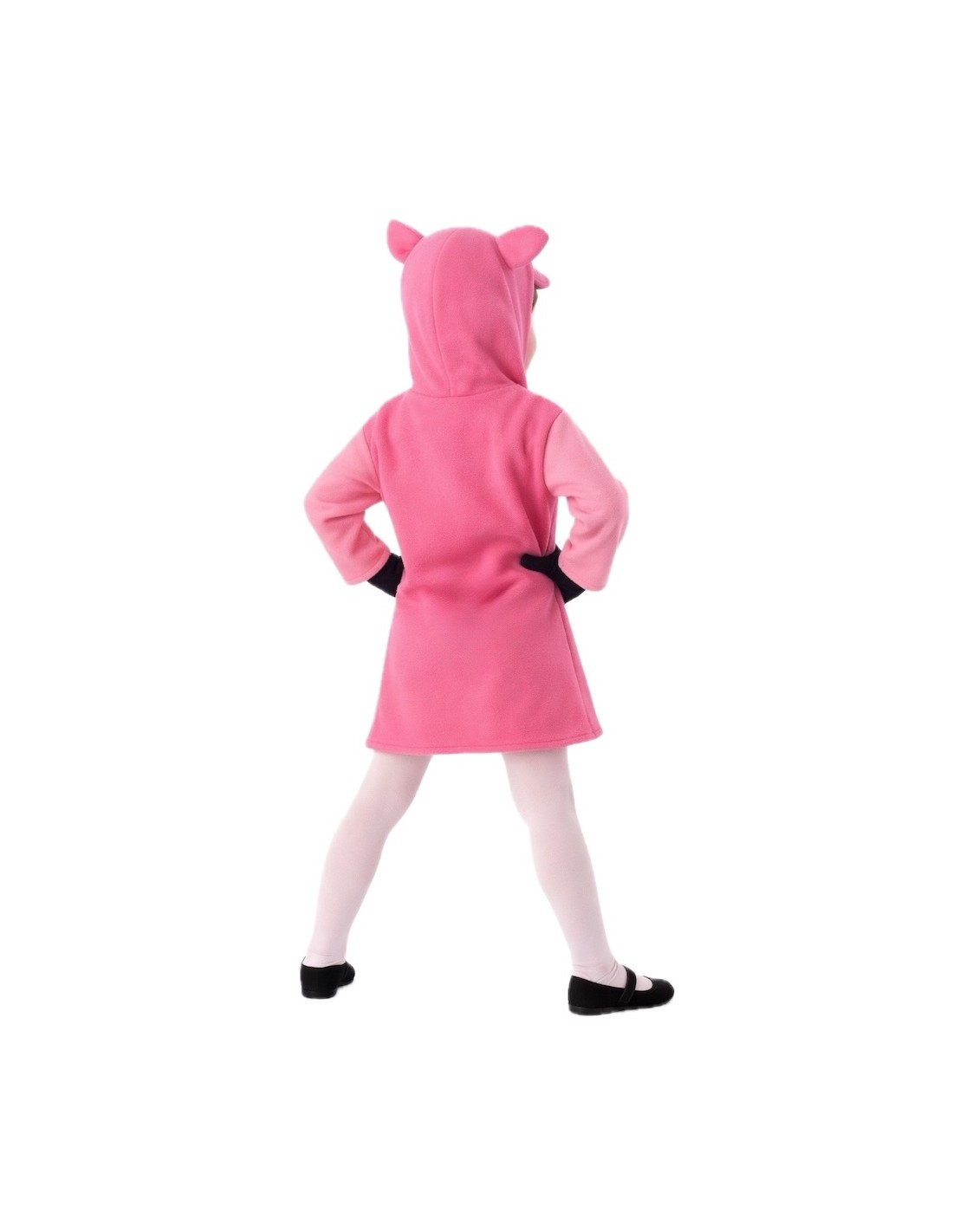 Wunderschönes Schweinekostüm mit einem Kleid aus kuscheligem Polyesterstoff, super weich und liebevoll, mit Klettverschluss im Nacken und integrierter Kapuze. Die Kapuze, aus demselben Material, ist gepolstert, um ihre Form zu erhalten und Verformungen zu vermeiden, verziert mit Augen und Nase aus dichtem Filz, die am Stoff befestigt sind. Leicht, bequem und sehr warm, ideal, um mit Stil und Zärtlichkeit auf jeder Party zu genießen.