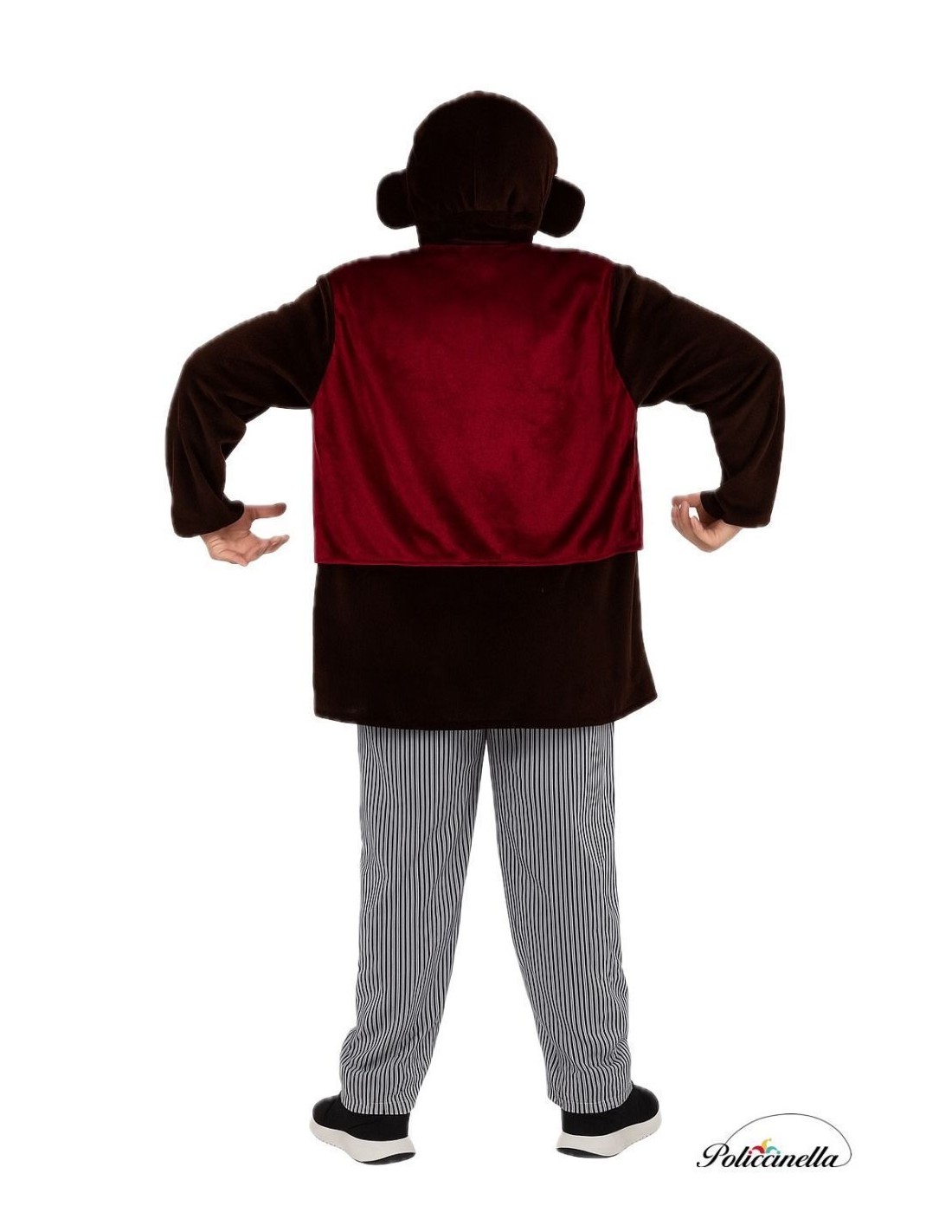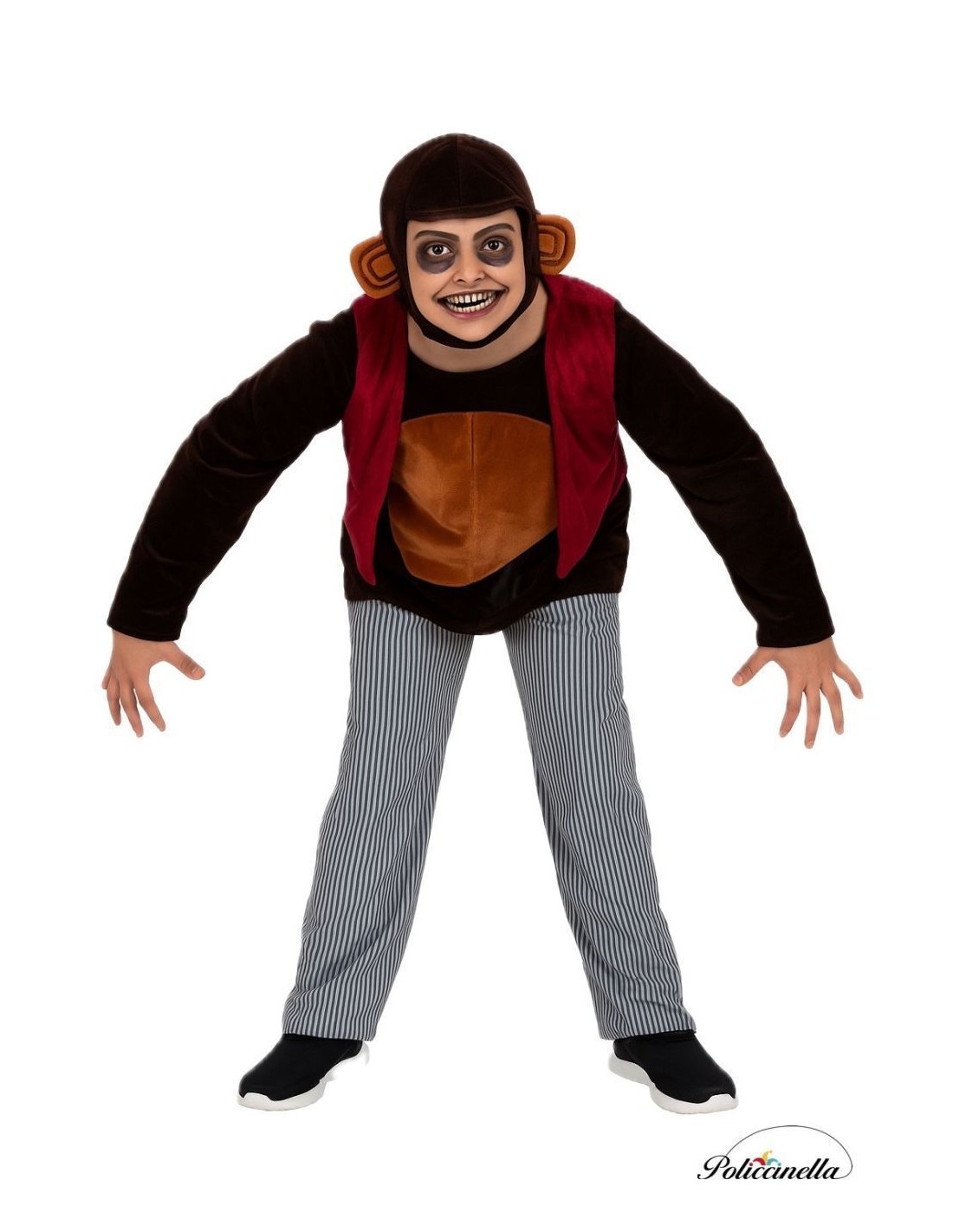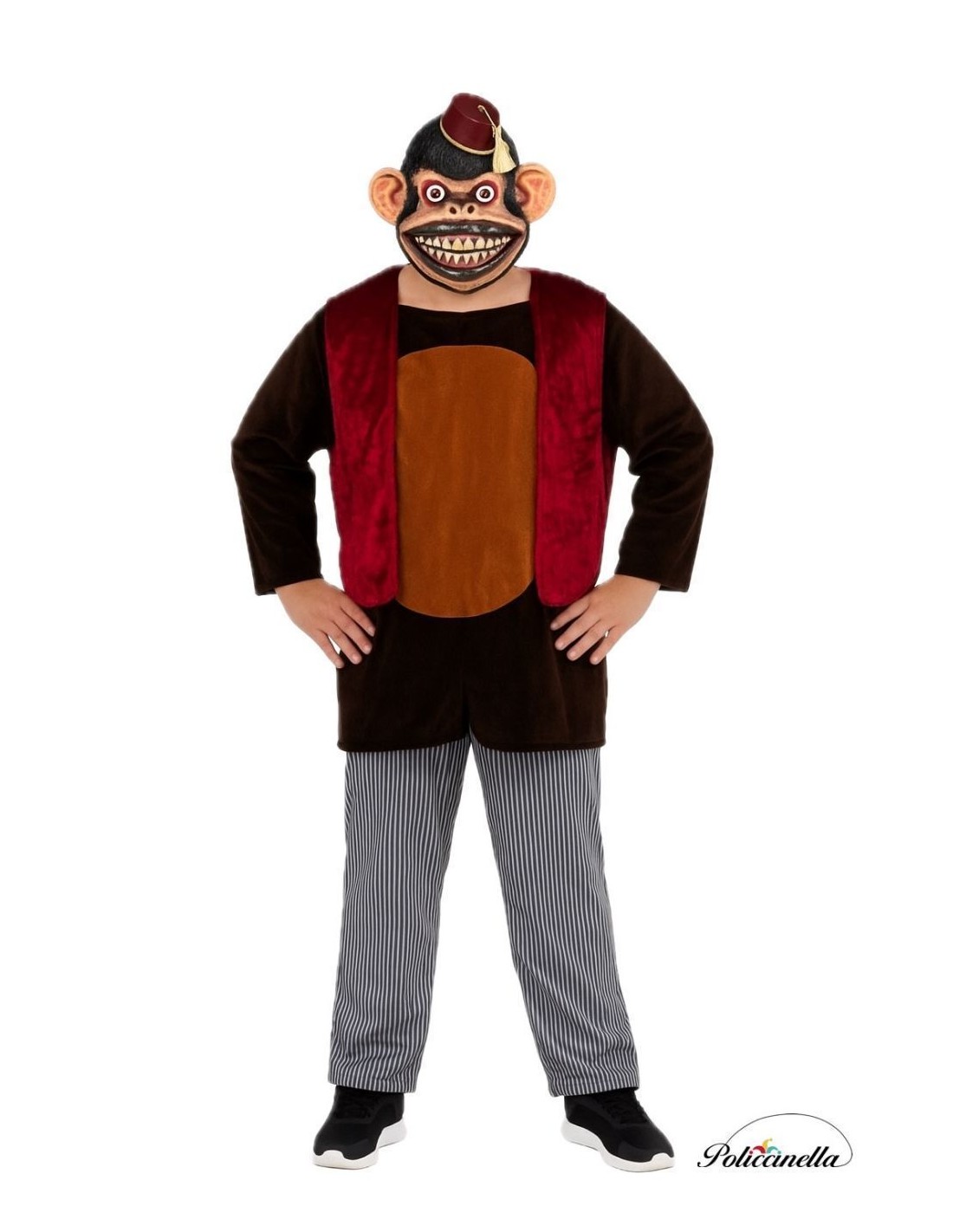 Unheimlich und raffiniert, dieses Kostüm reproduziert getreu den gruseligen Affen. Es beinhaltet eine Kapuze aus Samt mit integrierten Ohren, ein T-Shirt mit Klettverschluss am Hals, eine weiche Samtweste und eine Maschenstrickhose mit elastischem Bund und Innentasche. Jedes Detail ruft die beunruhigende Präsenz des mörderischen Affen hervor, ideal für diejenigen, die ein beeindruckendes, bequemes und von filmischer Spannung geladenes Outfit suchen.