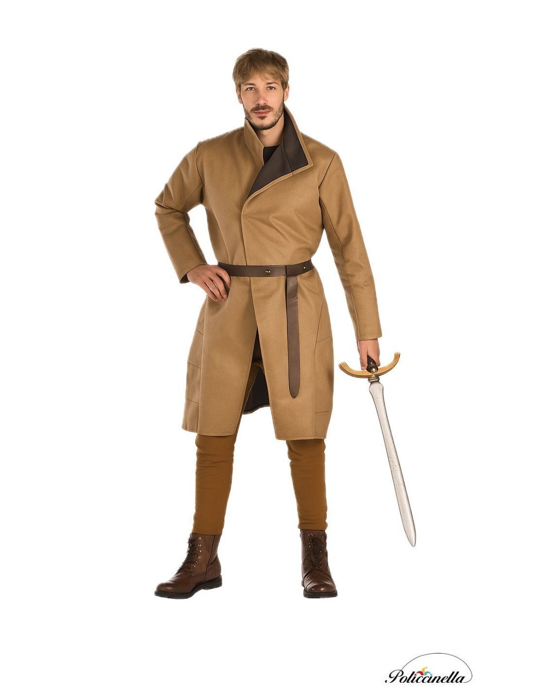 Dieses beeindruckende mittelalterliche Tunkostüm für Erwachsene ist ideal, um dich in die Zeit der Ritter und Burgen zu versetzen. Hergestellt aus einem samtartigen Stoff auf einem dichten Filter, bietet die Tunika eine feste Struktur, die ihre elegante und authentische Form betont. Der vordere Verschluss erfolgt über ein praktisches Klettverschlusssystem, was eine einfache Anpassung und bequeme Passform gewährleistet. Das Set wird durch einen Ledergürtel komplettiert, der mit bronzenen Details verziert ist, die eine markante und mittelalterliche Note verleihen. Perfekt für Themenpartys, historische Nachstellungen und für diejenigen, die Qualität und Stil suchen, ermöglicht dieses Kostüm, einen edlen Krieger mit großer Realitätstreue zu verkörpern.