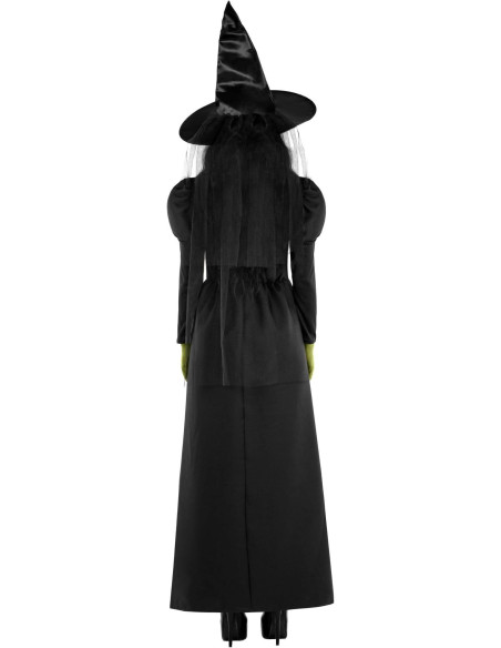 Ein Satz, der Mysterium und Unterscheidung kombiniert. Das Kleid aus weichem und verstopftem Polyester, sportiert ein langes Taillen-Design, das sich bequem in die Größen von 36 bis 44 anpasst. Seine Lanternhülsen und der vorderen Dekorationsschaltflächen bringen eine klassische Note mit, während der hohe Hals- und Klettverschluss auf der Rückseite ein sicher ist tadelloser Finish. Das Set ist mit einem widerstandsfähigen Satin-Hut mit einem internen Ring abgeschlossen, der seine schwarze Form und Tüll aufrechterhält, der in die Taille fällt. Seine Spitze ist leicht gekrümmt, fügt eine lustige und einzigartige Luft hinzu, ideal für Themen- oder Halloween-Partys
