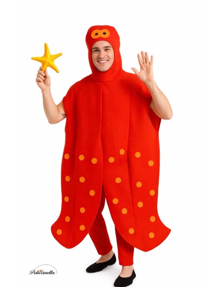 This full-body costume is made of foamed polyester. It has side openings and two elastics at the waist to ensure proper support and structure. The decoration consists of orange pieces made of the same material as the costume body, attached to the fabric.