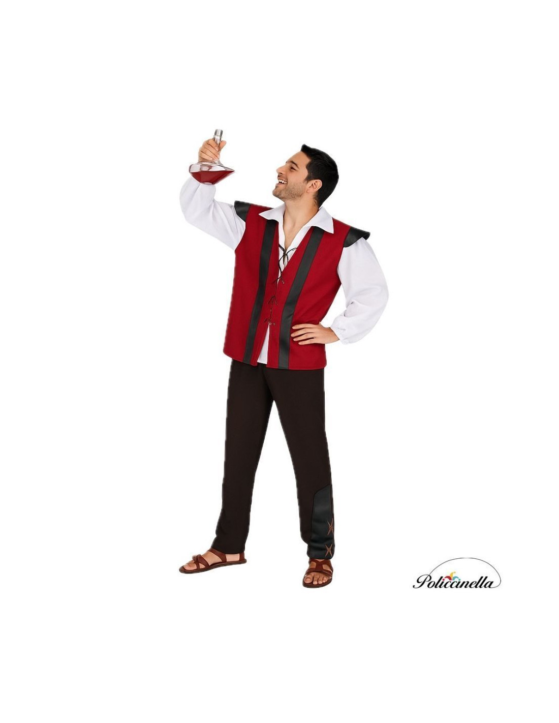 This complete medieval innkeeper costume combines comfort and authenticity thanks to the quality of its finishes. The white shirt, made of fine yet durable polyester, features a V-neck with wide lapels, laced at the chest, and with elastic cuffs for a comfortable fit. The vest, with a peach-like texture on both the front and back, includes details that simulate leather and closes with a front lace, adding realism and character. The pants, also made of polyester, have an elastic waist for better adaptability and a small internal pocket. The lower part of the legs is adorned with leather-like pieces, laced with cords, achieving a sturdy, versatile, and authentic appearance.