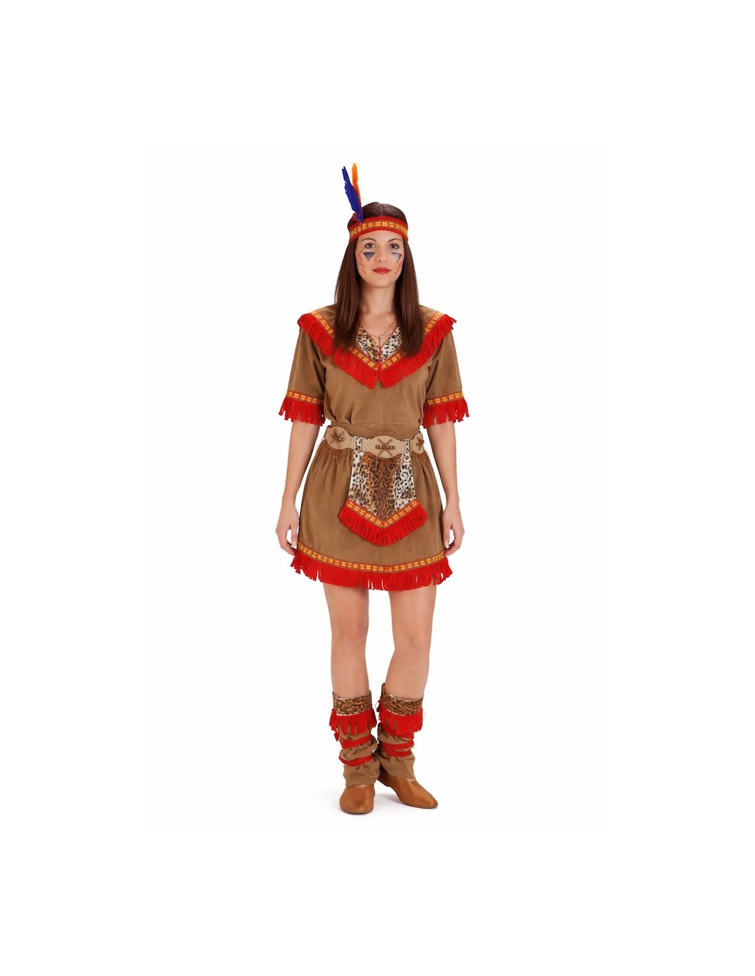 This costume, made of a soft fabric similar to velvet, emulates the characteristic outfit of Native Americans from the West, who used animal hides from their hunts for its creation. The jacket closes with Velcro at the back of the neck. On top of it, a chest piece with an animal print pattern has been made, adorned with fringes and patterned ribbon, the...