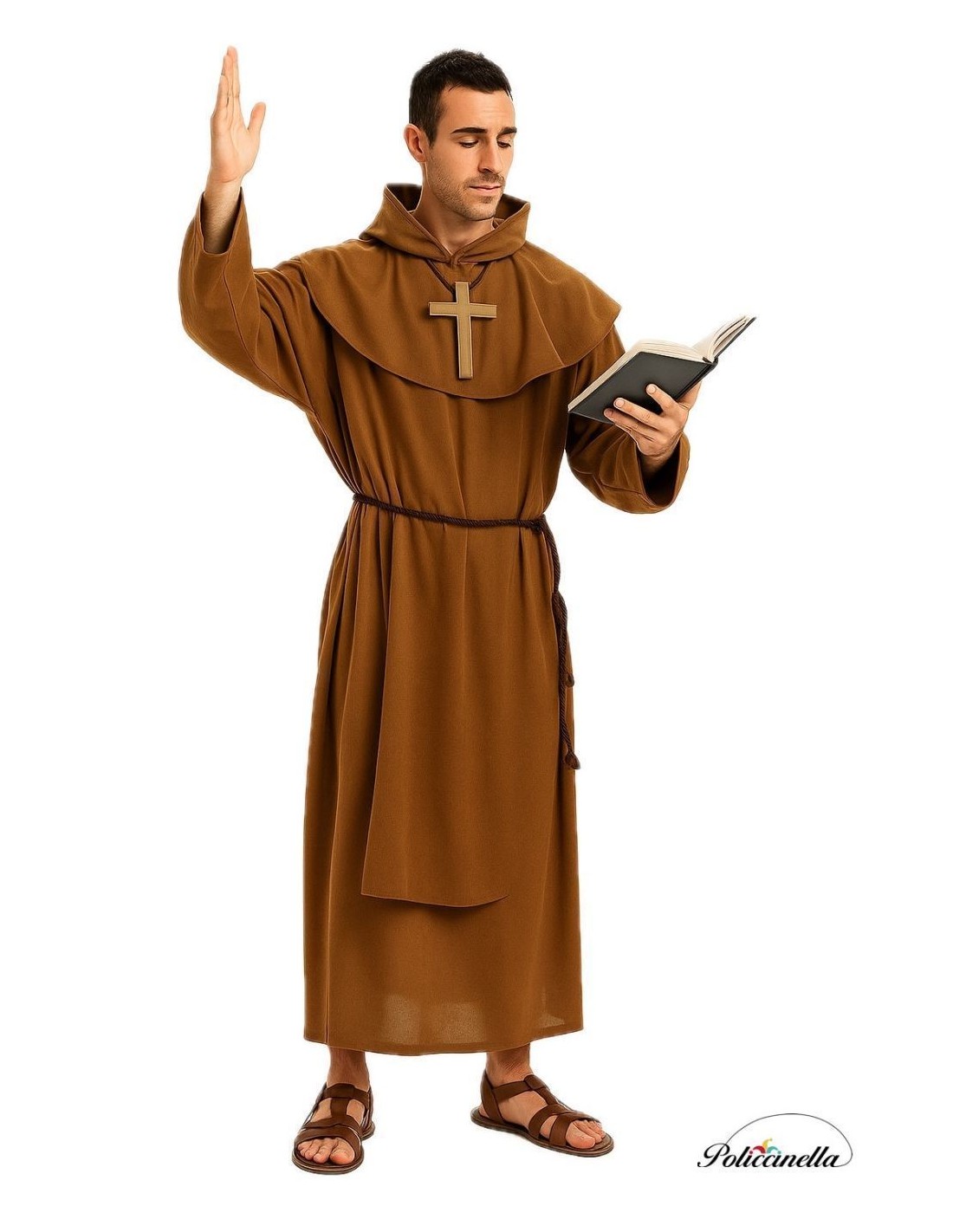 This monastic habit consists of a tunic that closes at the back of the neck with Velcro. On top of it, there is a central piece that allows for the hands to be stored, as is customary in monastic habits. The hood, with a scapular, extends to the shoulders and covers both the front and back. It also has a cord to adjust it at the waist. The entire ensemble is made of soft polyester with a peach-like texture.