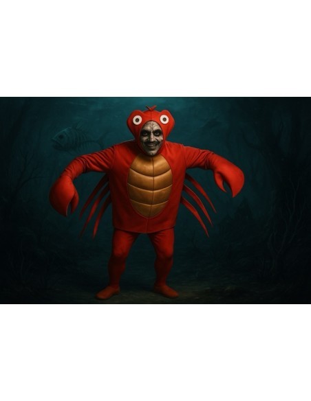 A fun and original design to stand out at any party. The front part, made of foamed satin, provides structure and volume to the crab's shape, while the back part, made of semi-elastic knit fabric, ensures lightness and comfort. The velcro closure at the neck makes it practical to put on and take off. The sleeves end in crab claw-shaped mittens, also made of foamed satin, attached to strips that connect to the side legs, creating a dynamic effect: when moving the arms, the legs follow the gesture and seem to come to life. It includes a hood made of foamed satin with felt eyes on the front and TNT on the back with a rear velcro adjustment, light and comfortable. A well-made, clever, and full of movement costume to have a great time.