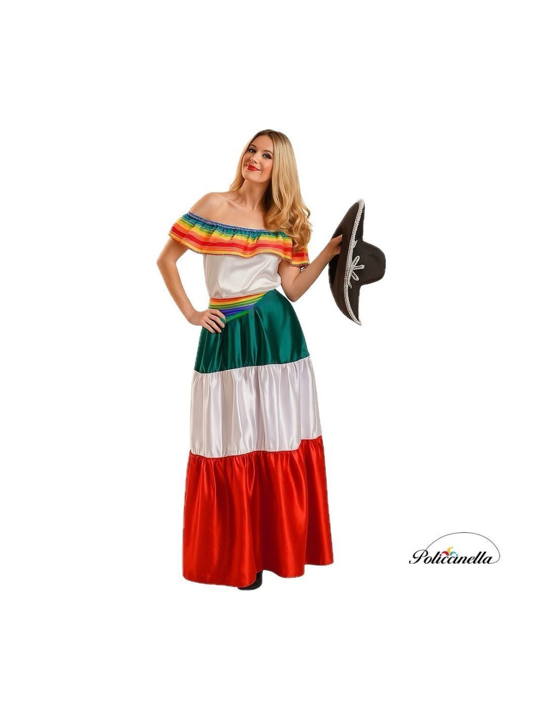 Nice dress made of tucket and soft satin, with boat-type neckline adorned with a showy steering wheel and rubber for a comfortable fit to the body. The sleeves are decorated with pillow or green ripples and have elastic to fit the arm. The elastic waist enhances the figure and provides volume to the skirt, creating an effect with a lot of flight. Includes a colorful decorative piece at the waist that is adjusted with lacing. Ideal for thematic parties, parades and traditional celebrations. Authentic and full of joy!