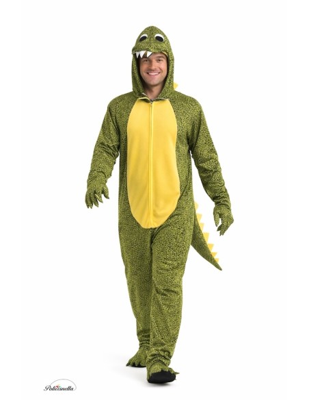 Become the king of the swamp! This full monkey suit is made of soft semi-elastic knit fabric with an invisible front zipper and a hood with a crocodile head, just like the tail, hands, feet, and jaw, all foam-padded to add volume and shape, while the polyester belly with a peach-like feel adds a warm and realistic touch. The teeth and eyes, made of dense felt, complete the look with detail. Both the hands and feet have elastic bands to hold them in place. Lastly, at the neck, there is Velcro to hold the lower jaw. Comfortable, fun, and spectacular!