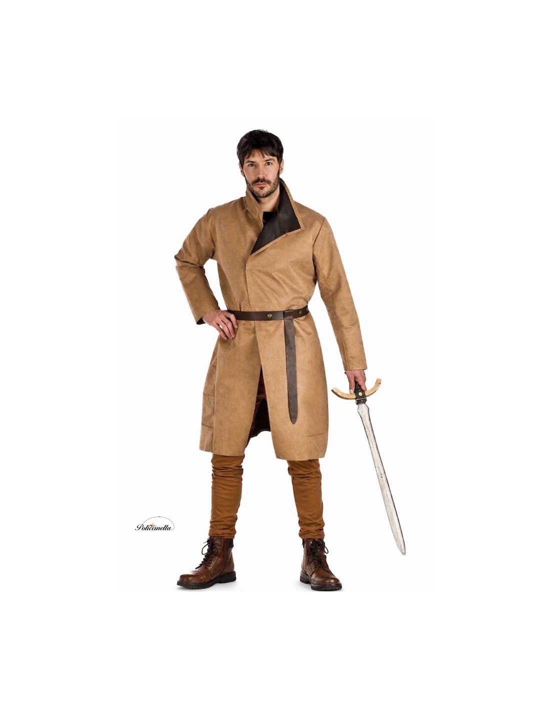 This impressive medieval tunic costume for adults is ideal for transporting you to the time of knights and castles. Made with a peach-like touch fabric on a dense filter, the tunic offers a firm structure that highlights its elegant and authentic shape. The front closure, made with a practical velcro system, ensures easy placement and a comfortable fit. The ensemble is completed with a leather-like belt adorned with bronze pieces that provide a distinctive and medieval touch. Perfect for themed parties, historical reenactment events; this costume combines quality and style, allowing you to embody a noble warrior with great realism.