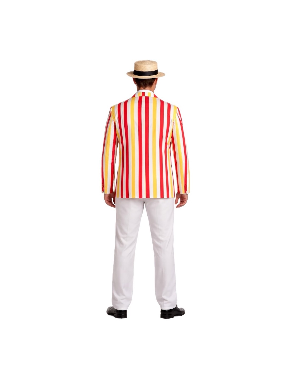 Relive the magic of the most charming London with this elegant costume. It includes an American-style jacket in soft polyester with functional buttons at the front and matching pants with an elastic waistband and an inner pocket for added comfort. The false shirt, made of knit fabric, closes at the back with Velcro and incorporates an adjustable bow in the back. It is completed with a satin bow tie with Velcro tape for a perfect fit. A comfortable, versatile, and charming ensemble, ideal for shows, parties, or themed recreations.