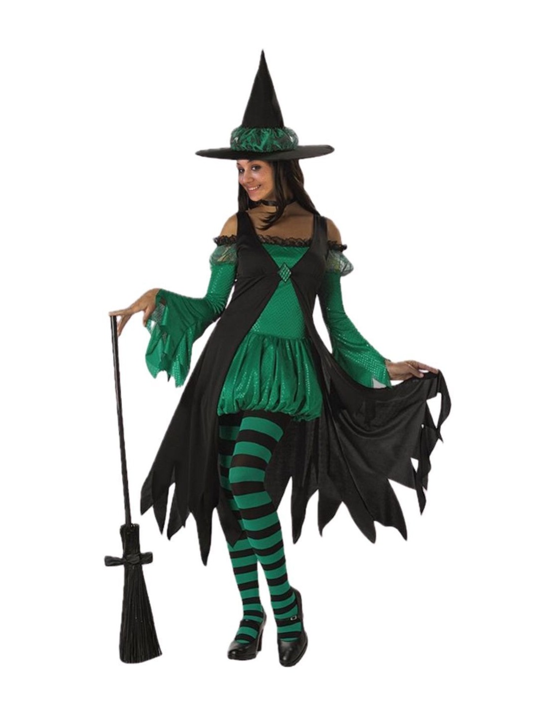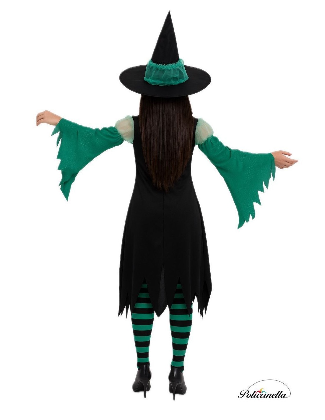 Charming witch costume that combines elegance and comfort. It includes a semi-elastic machine-knit dress with embedded sequins, a low-waisted puffy skirt, and a Bardot neckline that enhances the shoulders, with elastic at the back for a perfect fit. The vest, with an A-line cut and soft fabric, lightly adapts to the figure and fastens with a metal clasp (random color). The tights, elastic and opaque, provide comfort and style. The ensemble is completed with a hat adorned with matching tulle, light and comfortable. Available in S/M (36/38) and M/L (40/42) sizes thanks to its construction that covers several sizes with an excellent fit.