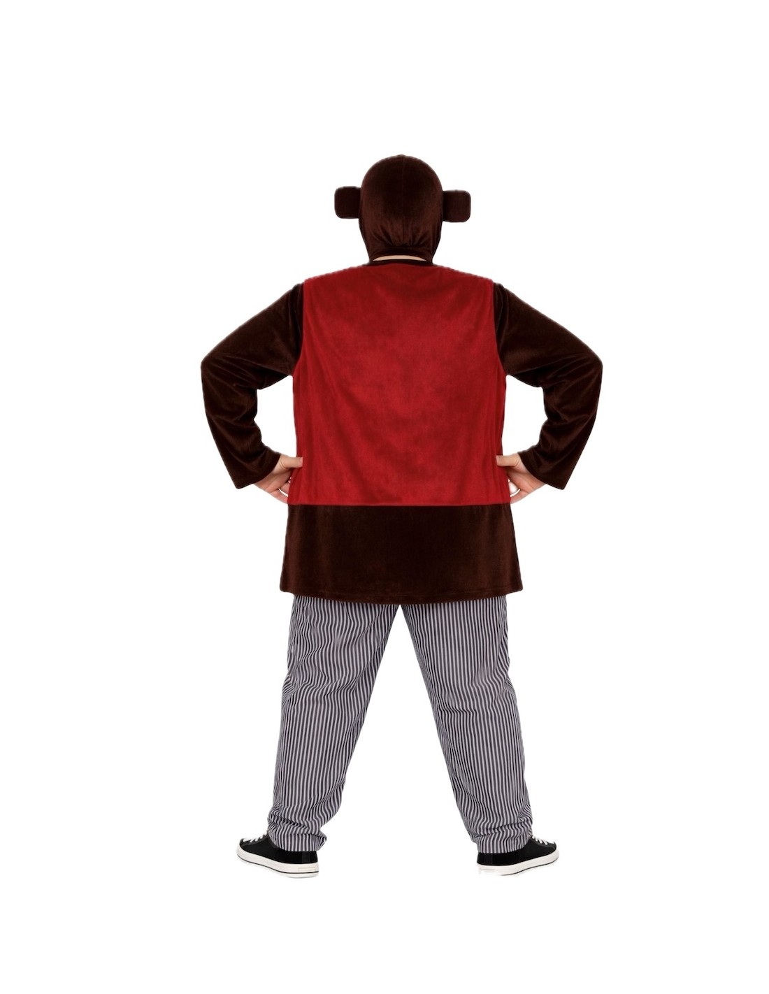 Disturbing and sophisticated, this costume faithfully recreates the sinister ape. It includes a velvet hood with integrated ears, a t-shirt with Velcro closure at the neck, a soft velvet vest, and machine-knit pants with an elastic waistband and interior pocket. Every detail evokes the disturbing presence of the killer monkey, ideal for those seeking a striking, comfortable outfit loaded with cinematic tension.