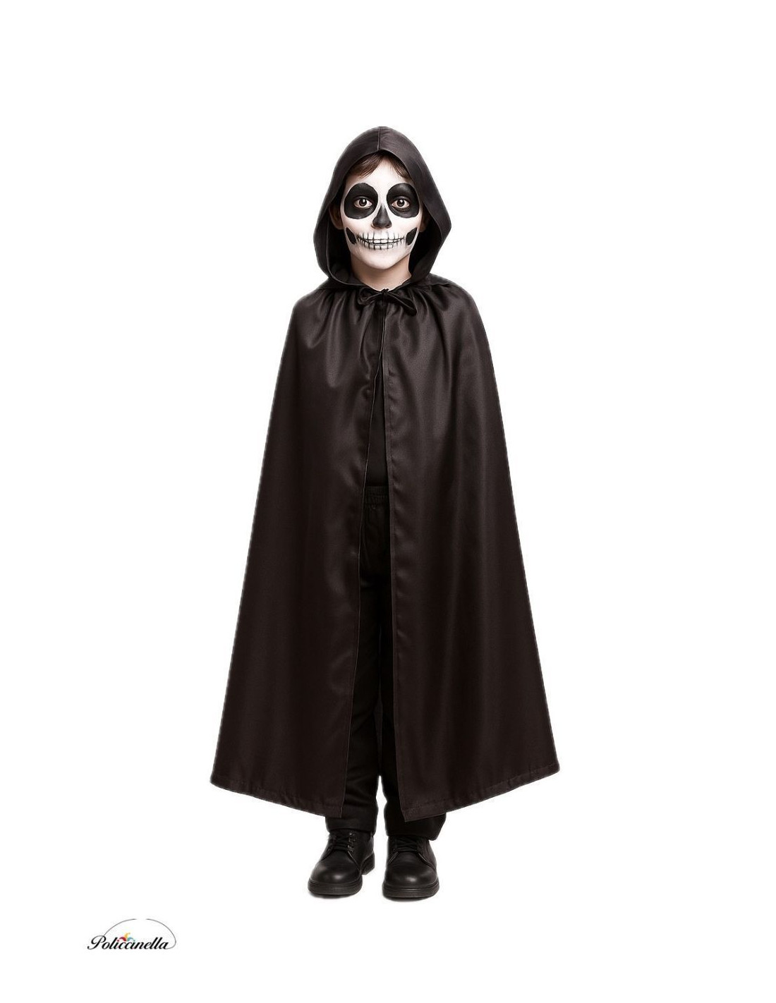 Hooded cape made of soft, shiny satin, perfect for elegantly completing fantasy outfits. It features an integrated hood and a side velcro closure at the neck, complying with safety regulations. The pattern, carefully molded to fit the shoulders, ensures a comfortable and flattering fit. The gathered neck adds volume and a majestic touch, while the hem is reinforced with a non-woven TNT strip that provides weight and structure to the garment, achieving a flawless drape.