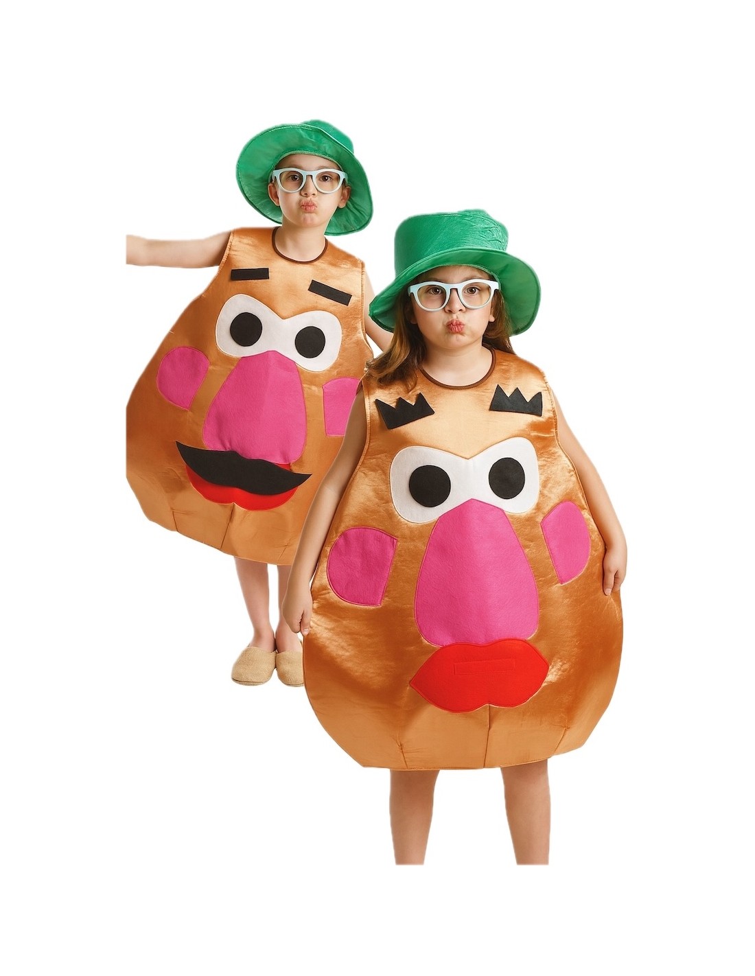Fun costume ideal for surprising with an original and humorous look. It consists of a piece made of foamed satin that maintains its shape, with a Velcro closure at the back of the neck and a semi-elastic soft back for greater comfort and lightness. It includes all the necessary pieces to create two different faces, made of dense felt and easily interchangeable thanks to its Velcro system. It is completed with a foam satin hat, designed to maintain its shape without deforming. Creative, comfortable, and very friendly.
