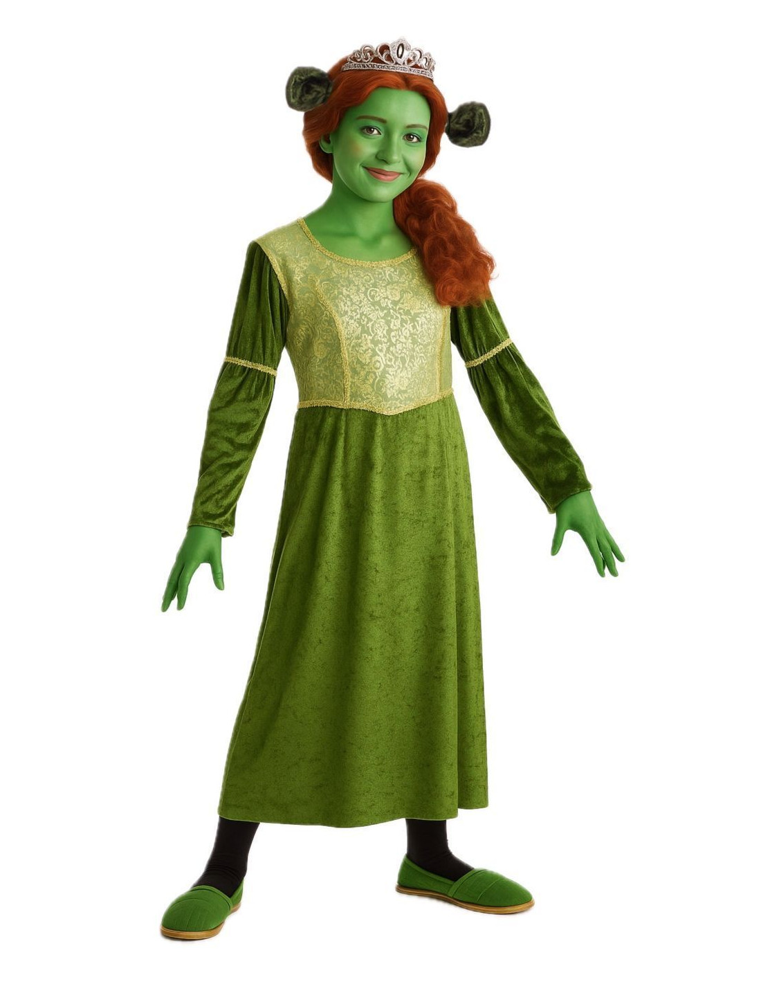 Charming costume perfect for transforming into a fun and elegant ogress. It includes a beautiful dress made of soft velvet with a square neckline, back elastic for a comfortable fit, and details in golden brocade fabric that enhance the body and sleeves, decorated with delicate trim. It is completed with a headband with velvet foam ears, structured to maintain its perfect shape. An original, comfortable costume full of details!