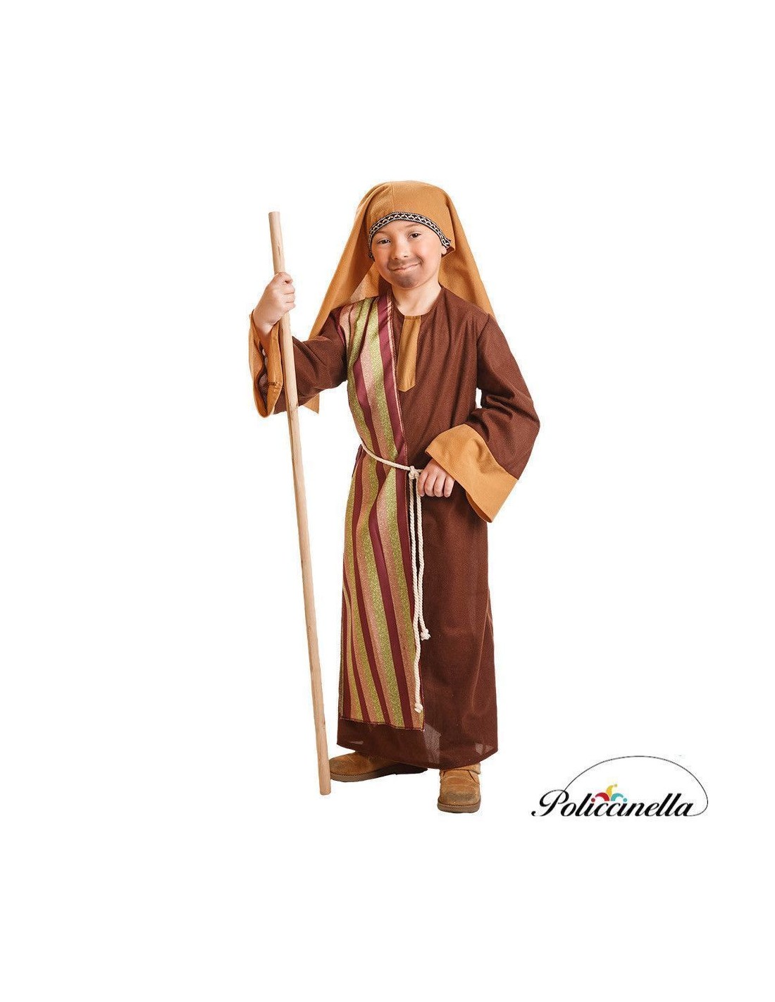 Includes polyester tunic with peach-like texture, comfortable and lightweight, with Velcro closure at the back of the neck. The design features a symbolic mantle made of dense polyester that falls to the front, evoking the classic figure of Saint Joseph. The veil, made of the same fabric as the tunic and adorned with an elegant printed ribbon, is securely fastened with an interior elastic band for maximum comfort. It is completed with a thick i-cord to adjust at the waist. An authentic and easy-to-wear ensemble!