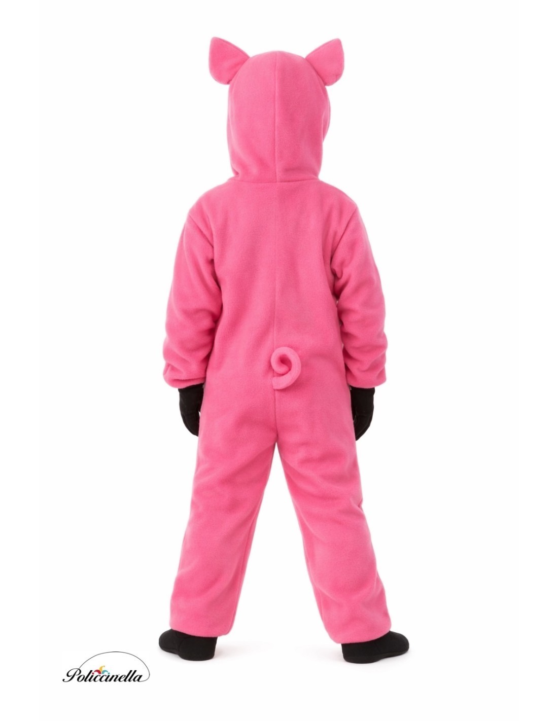 Adorable pig costume with full-body suit, made of super soft and pleasant plush-like fabric, with an invisible zipper at the front. The integrated hood, made of the same material, is foam-lined to maintain its shape, with eyes and nose made of dense felt attached. On the back, the cute curled tail has an internal wire to mold it and maintain its shape. Light, comfortable, and with high-quality finishes.