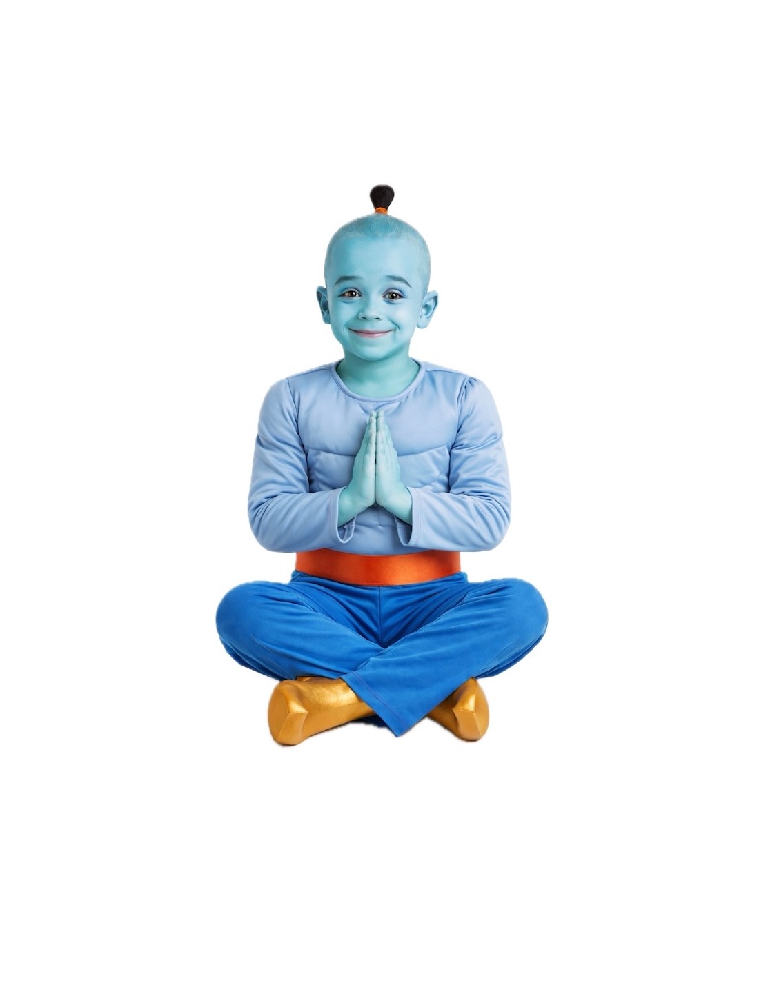 Become the most friendly and powerful genie with this complete costume. It includes a soft, semi-elastic machine-knit shirt with a velcro closure at the back of the neck, and padded chest and arms that give the character's classic muscular appearance. The outfit is completed with pants made of the same fabric, comfortable and with an elastic waist for a perfect fit. As accessories, there are gold shoe covers in the shape of slippers, made of foam and with a lower elastic to securely attach them to the shoes, and a shiny red satin belt, also foam-made and adjustable with velcro. A fun, comfortable, and eye-catching costume, perfect for Carnival, themed parties, or performances.
