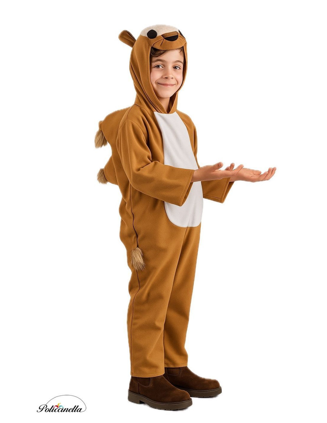 Este disfraz de camello destaca por su cuidada confección y la comodidad de su diseño: Mono de poliéster tupido de tacto amelocotonado, con cremallera frontal invisible y capucha integrada para un ajuste práctico y limpio. La joya del disfraz es su capucha con pelito de borreguito súper suave y las jorobas espumadas, que aportan volumen y un efecto tridimensional irresistible. Ojos y hocico en fieltro adheridos al tejido completan el carácter del animal. Un traje resistente, cálido y ligero!