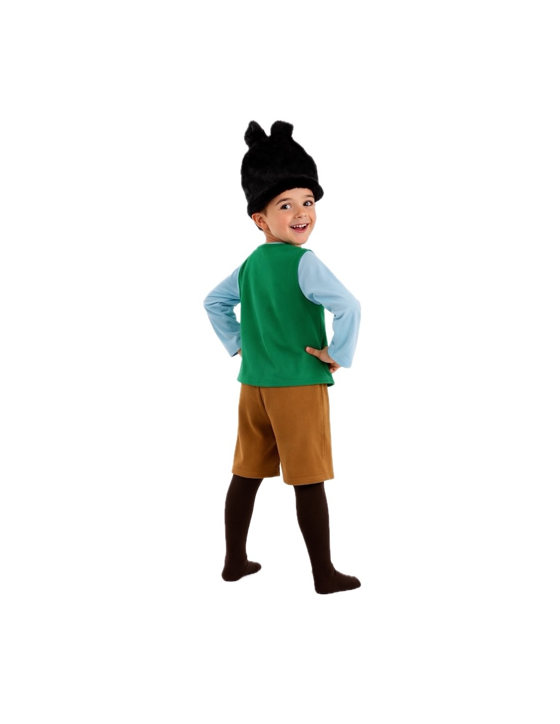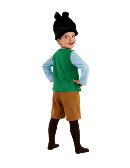 With this child troll costume, the magic of enchanted forests comes to life in a high-quality garment with careful craftsmanship. The shirt, made of soft semi-elastic fabric and featuring a comfortable Velcro closure at the neck, includes a front vest that creates the effect of two pieces in one. The pants, made of peach-feel polyester, incorporate fun patches that enhance their rustic and playful look, while ensuring comfort thanks to their elastic waistband. The ensemble is completed with an original hat-wig, made on a foamed base to maintain its structure and with an extra soft and pleasant finish to the touch. A durable, comfortable, and full of fantasy costume, perfect for Carnival, school parties, or magical adventures.