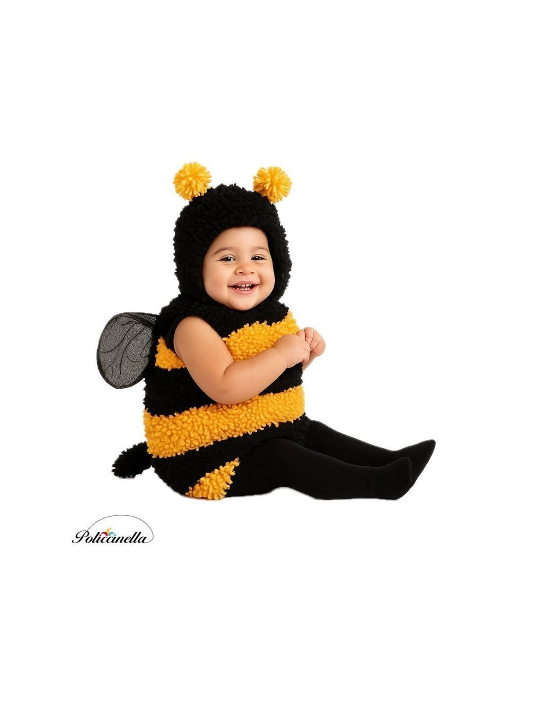 Sweetness and comfort come together in this charming bumblebee costume, made of soft terrycloth fabric with an inner lining for added comfort. It features a velcro closure from the neck down to the waist for easy dressing, and a velcro closure on the hat at the neck for a perfect fit. The diaper cover stands out for its comfort, as it has a practical opening with clips that make diaper changes or visits to the toilet easier. It includes a tail in the same fabric and wings sewn on the back made of soft tulle, as well as a hat with matching antennas. Ideal for enjoying with total freedom and tenderness.