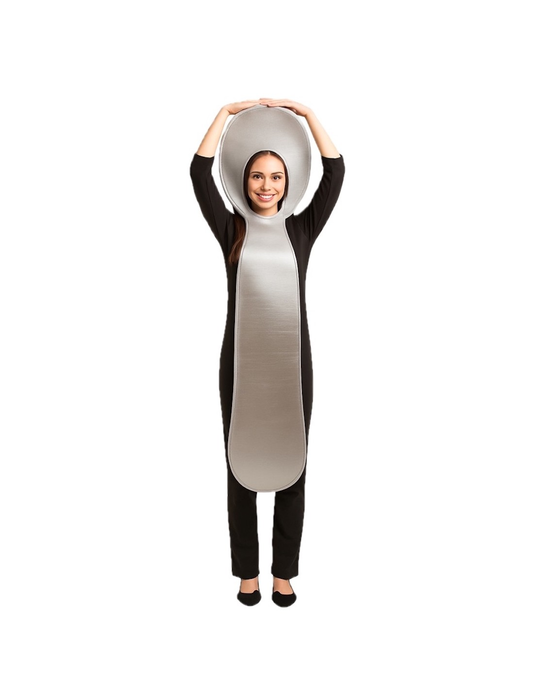 Sorprende con este original disfraz de cuchara unisex, una propuesta divertida y diferente para carnavales, fiestas temáticas o eventos de grupo. Confeccionado en una sola pieza de raso foamizado, mantiene la estructura y la forma para un acabado impecable y llamativo. La parte frontal representa el mango de la cuchara, mientras que la capucha reproduce con gracia la característica forma cóncava. Ligero y cómodo, no pesa y se adapta fácilmente a todo tipo de tallas, permitiendo llevarlo encima de la propia ropa. Su diseño práctico y desenfadado lo convierte en la elección perfecta para destacar con humor y estilo en cualquier celebración.