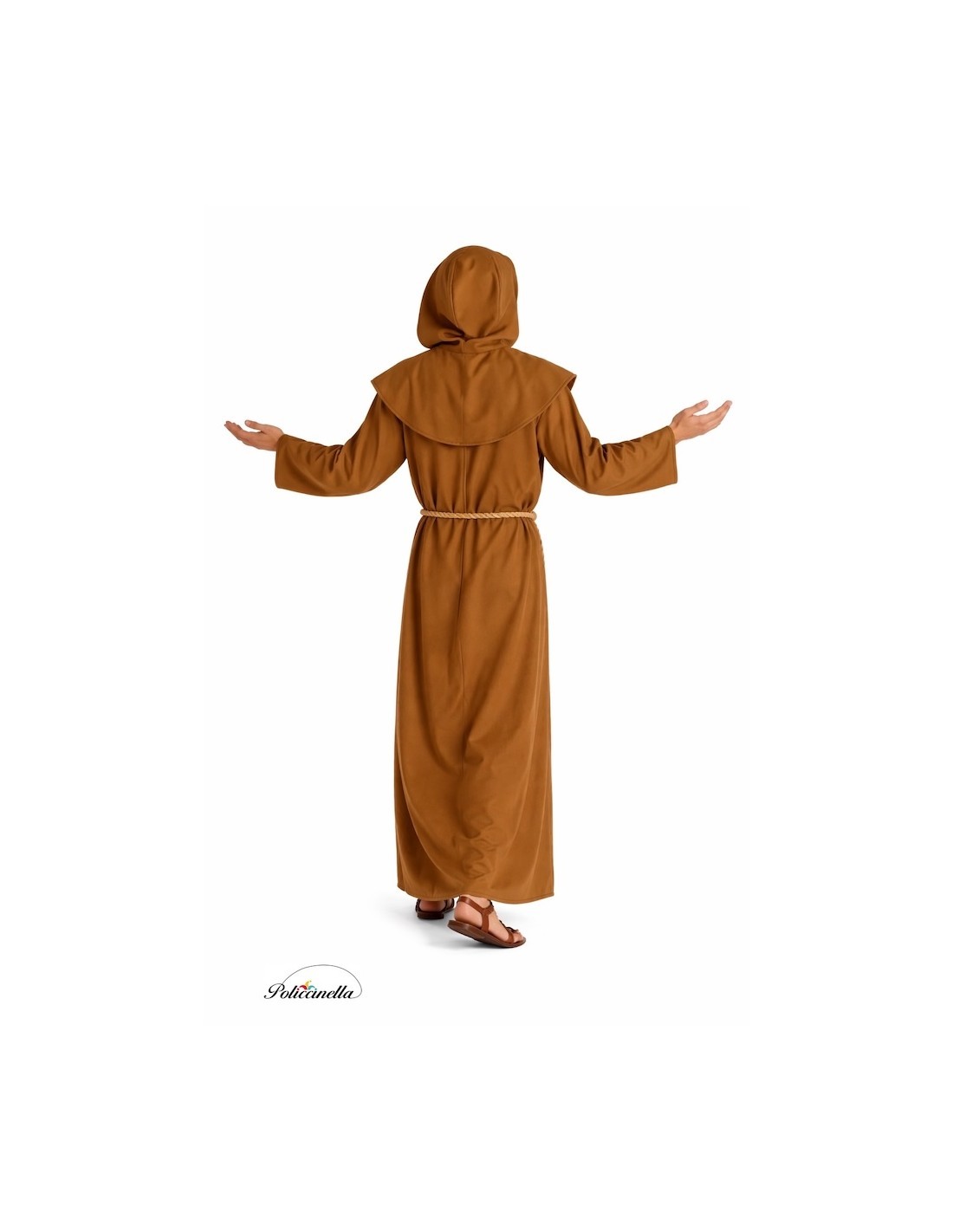 Este hábito monacal se compone de una túnica que se cierra al cuello por detrás con velcro. Sobre ella, se sitúa una pieza central que permite guardar las manos, como es habitual en los hábitos monásticos. La capucha, con escapulario, llega hasta los hombros y cubre tanto la parte delantera como la trasera. Dispone también de un cordón para ajustarla a la cintura. Todo el conjunto está confeccionado en suave poliéster de tacto amelocotonado.