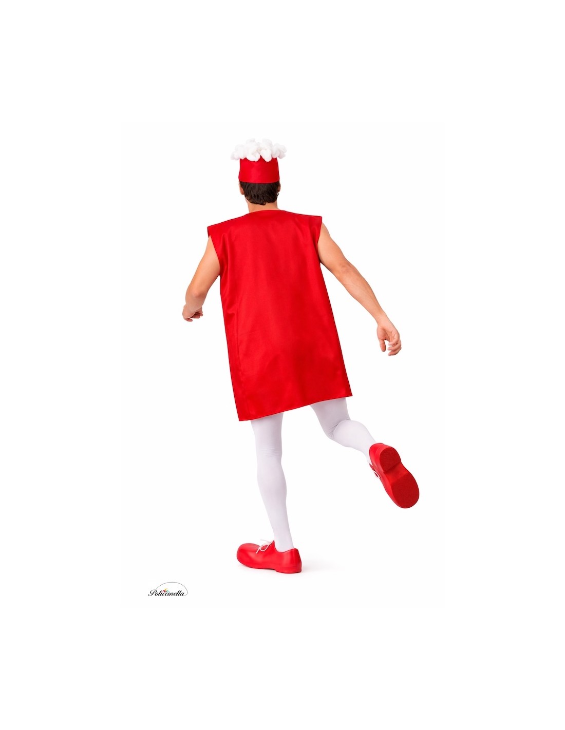 Conviértete en el centro de las miradas con este divertido disfraz de caja de palomitas, perfecto para fiestas temáticas y celebraciones originales. El conjunto incluye un gorro tipo casco confeccionado en raso foamizado, que conserva su estructura y forma, decorado con detalles esponjados que simulan palomitas. La pieza principal es un cuerpo entero de corte recto con aperturas laterales para los brazos: el frente está elaborado en raso foamizado, aportando volumen y definición, mientras que la parte trasera, en suave punto de máquina semielástico rojo, garantiza ligereza y comodidad al llevarlo. La zona superior luce esponjosos adornos a la altura del cuello y hombros, y en el centro destaca una pieza de filtro azul con el texto “Pop Corn”, que realza el diseño con un toque simpático y llamativo. Un disfraz muy cómodo y ligero, que gracias a sus dimensiones abarca un amplio rango de tallas, ideal para asegurar diversión y comodidad en cualquier evento.