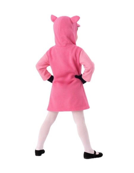 Precioso disfraz de cerdita con vestido confeccionado en poliéster tipo peluchín, súper suave y amoroso, con cierre de velcro en la nuca y capucha integrada. La capucha, en el mismo material, está foanizada para mantener su forma y evitar deformaciones, decorada con ojos y nariz en tupido fieltro adheridos al tejido. Ligero, cómodo y muy calentito, ideal para disfrutar con estilo y ternura en cualquier fiesta.