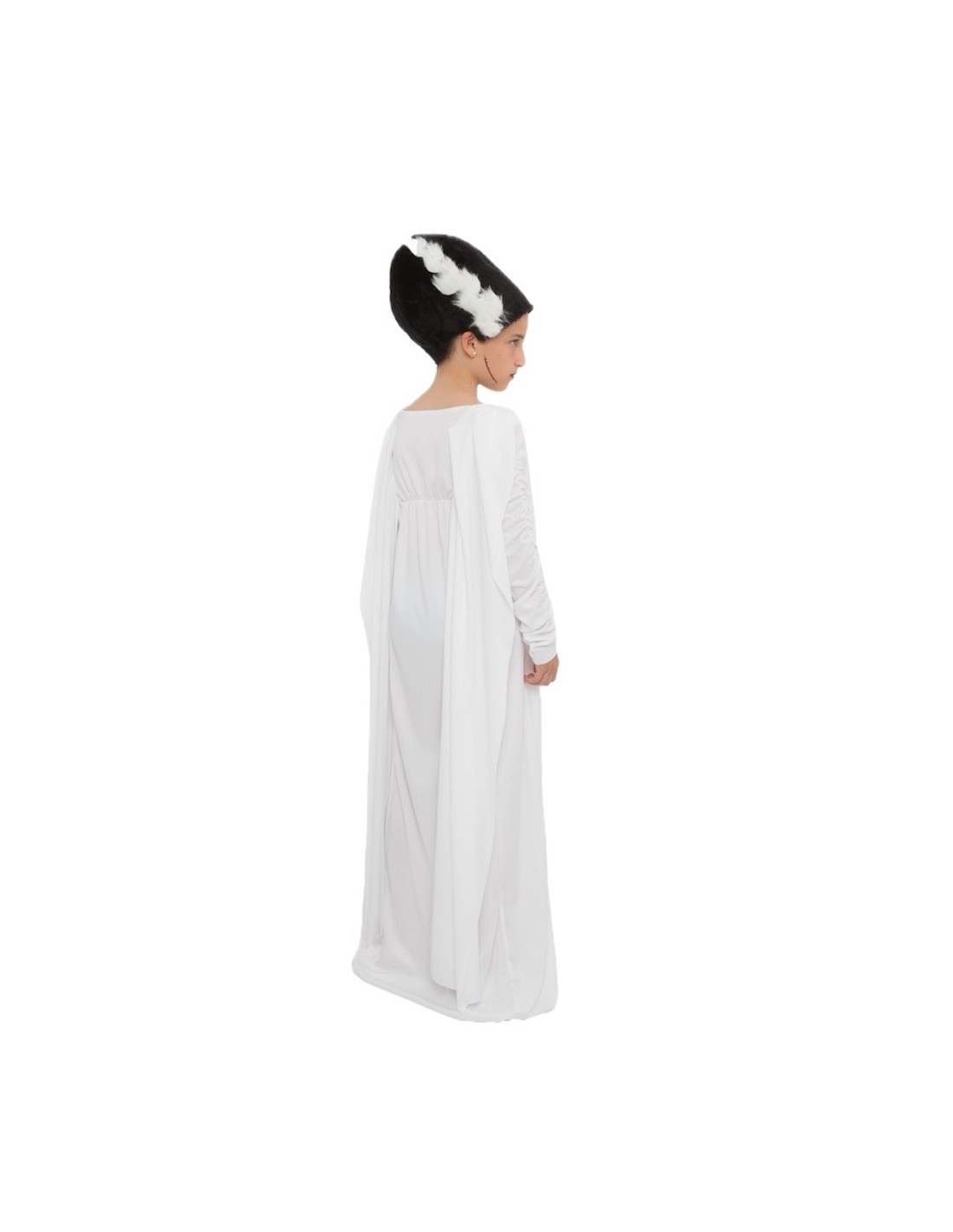 Se trata de un vestido largo y con mucha caída, confeccionado en un suave punto de maquina y un bonito drapeado en el centro y mangas del vestido. El cuello es tipo caja y de corte recto con un suave vuelo en la parte de la falda. Lleva una goma en la espalda, que va de sisa a sisa, para una mayor adaptabilidad. Por la parte de detrás, tiene unas bonitas mangas-capa que parten desde los hombros hasta el suelo, dandole asi un aspecto mas ceremonioso al traje. Ademas, se complementa con un gorro-peluca ,ajustable a la cabeza por la parte interna del mismo. Este vestido, por el tipo de confección que presenta, puede ser que su última talla abarque hasta los 12 años o talla 34 (comprobar en tabla de medidas)