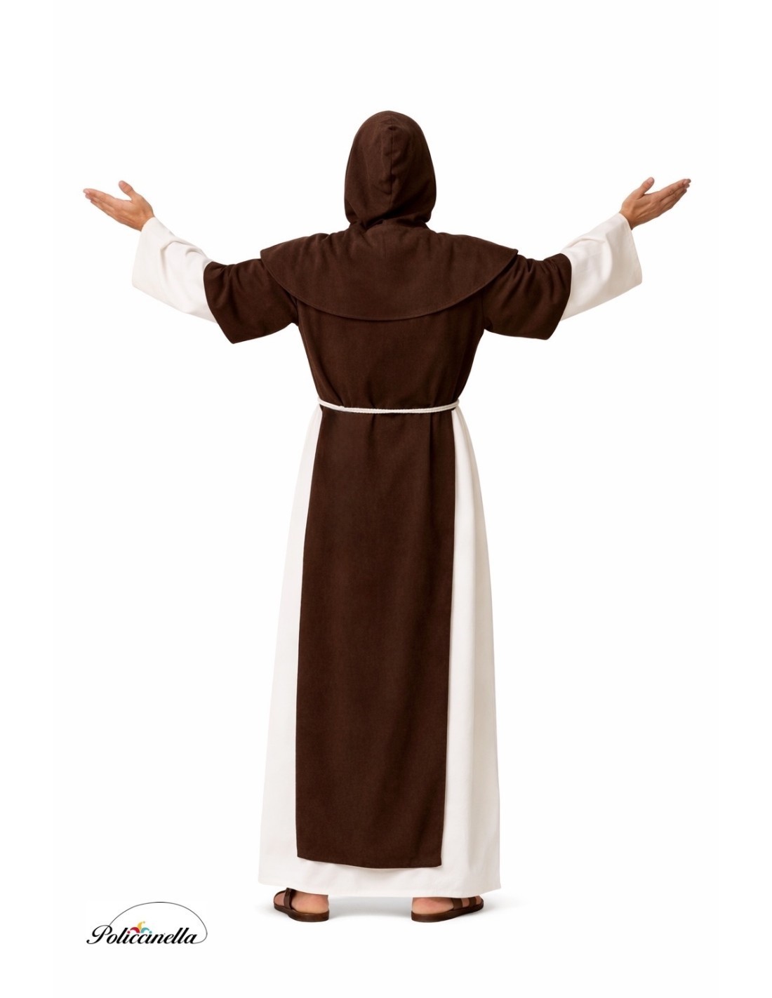 Habit de moine médiéval confectionné en polyester dense, de coupe longue et droite, avec ajustement au cou par un laçage à l'arrière. Comprend un scapulaire et une capuche intégrés, fabriqués en polyester au toucher doux, qui apportent texture et contraste visuel. L'ensemble est complété par un cordon fonctionnel à la taille pour régler l'ajustement et renforcer la silhouette traditionnelle de l'habit monastique.
