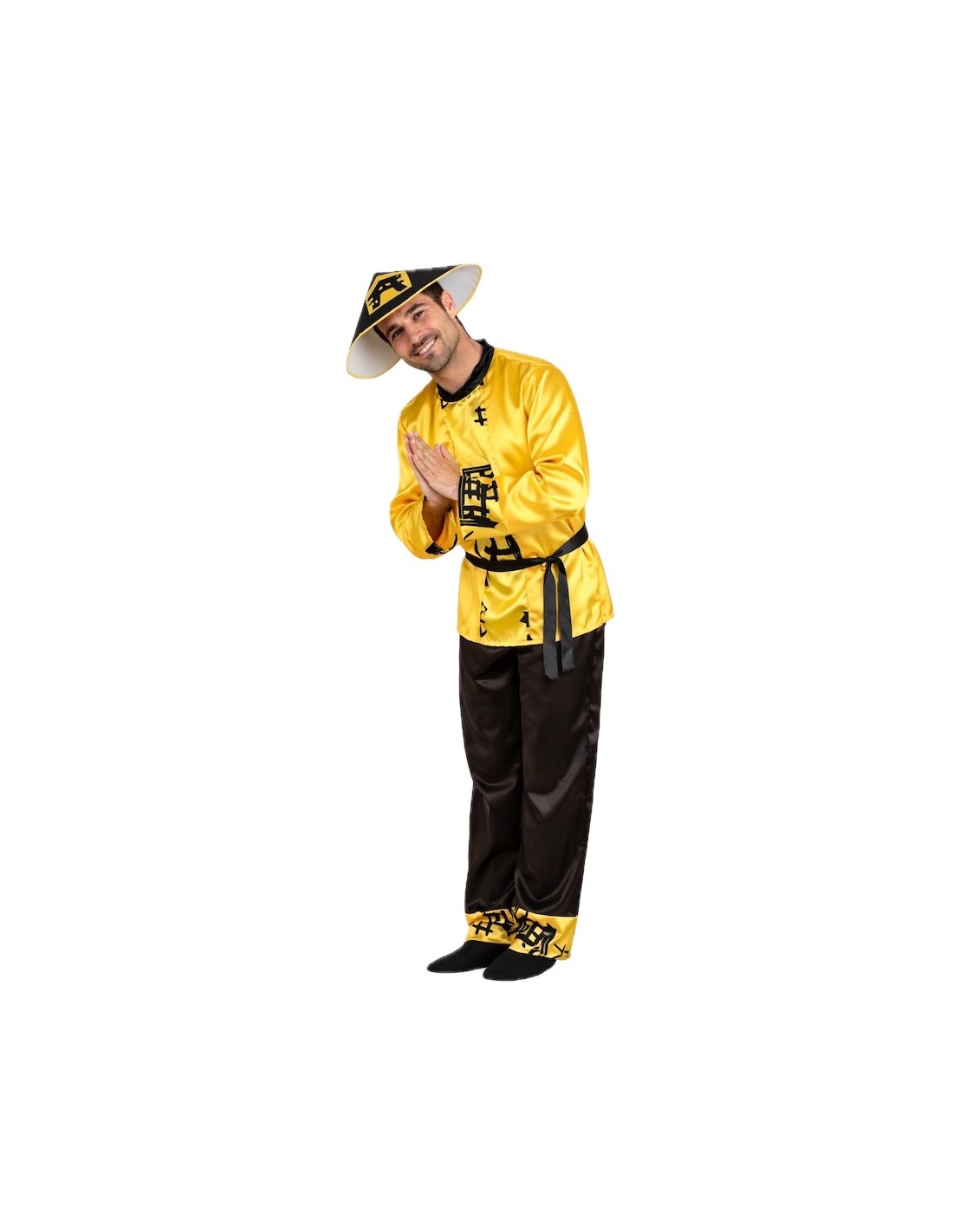 Ensemble inspiré du costume chinois classique, composé d'une chemise en satin doux avec un design de type tangzhuang, simulant la fermeture diagonale typique et un col haut. Il s'ajuste confortablement avec du velcro à l'arrière du col. Le pantalon confectionné dans le même matériau, dispose d'une taille élastique et d'une petite poche intérieure. L'ensemble est complété par le traditionnel chapeau chinois, rembourré et équipé d'un bandeau intérieur pour assurer un ajustement ferme, confortable et éviter qu'il ne tombe. Authentique et plein de charme oriental !