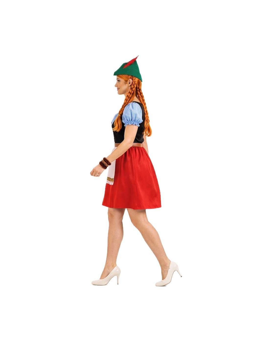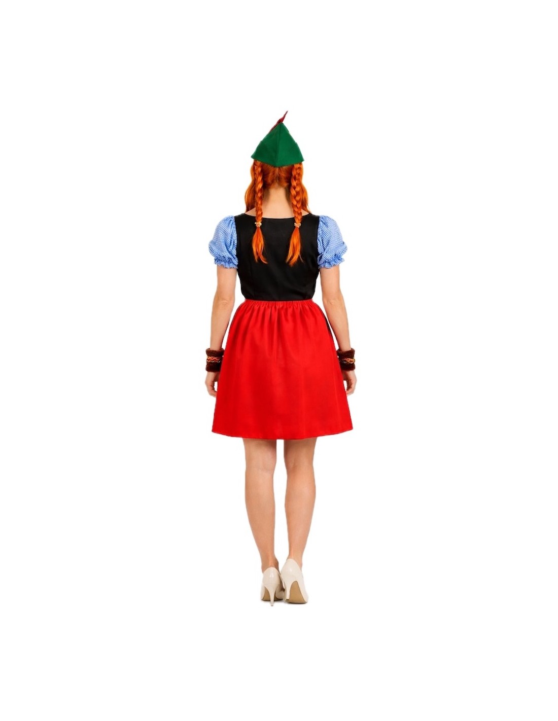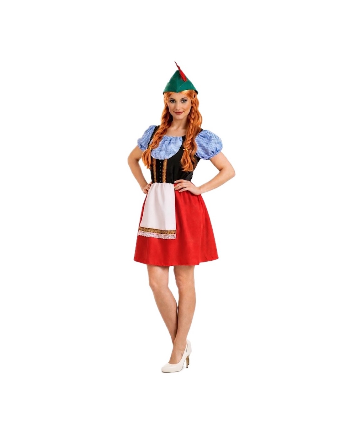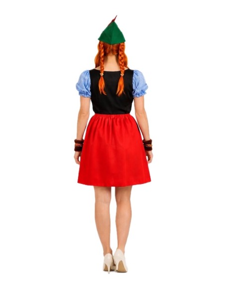 Robe traditionnelle à encolure carrée avec élastique pour un meilleur ajustement et adaptation. Fabriquée en velours doux et en polyester dense, elle présente une ceinture élastique à la taille et un tablier cousu à la robe elle-même. Le dos du corps est réalisé en doux tricot semi-élastique. Les ornements se composent de rubans à l'imprimé joli et coloré. L'ensemble est complété par le chapeau caractéristique représentant le personnage, fabriqué en filtre dense et solide pour conserver sa forme et sa structure, et décoré d'une plume latérale.