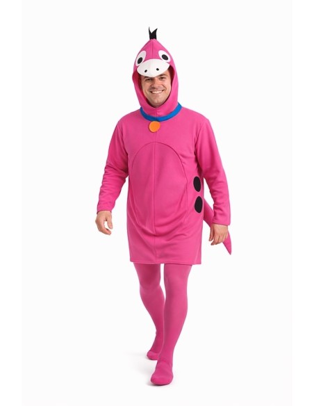 Osez vous démarquer avec ce charmant costume de dinosaure pour adulte, une proposition amusante et très voyante pour les carnavals, les fêtes à thème ou les animations. Fabriqué en une seule pièce en polyester au toucher velouté de couleur violette, il est confortable, doux et agréable au toucher. Le vêtement comprend une capuche intégrée et à la fois la poitrine et la capuche sont rembourrées pour apporter de la structure et maintenir la forme sans se déformer. Le bec est fabriqué en satin brillant, tandis que des détails tels que les yeux et le cou ont été réalisés en un tissu dense collé au costume. La queue, moelleuse et légère, est fixée avec du velcro en conformité avec la réglementation de sécurité, garantissant fermeté et confort. Un costume original, joyeux et plein de caractère avec lequel vous serez le centre de toutes les attentions.
