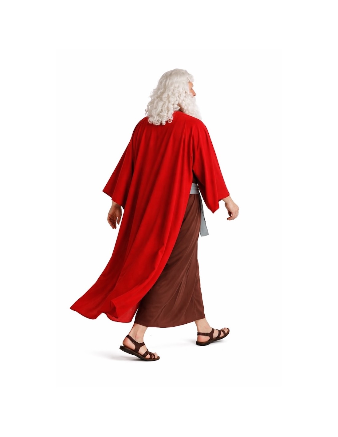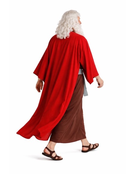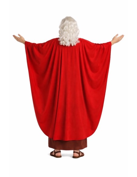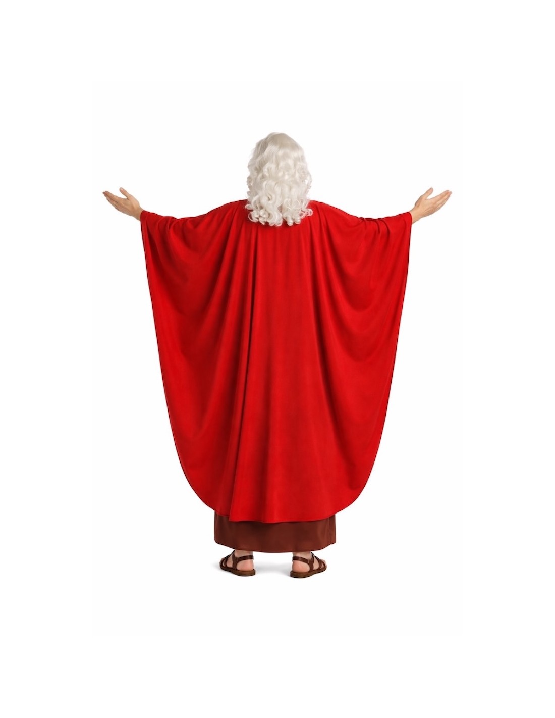 Ce costume de Moïse se compose d'une tunique sans manches, fabriquée en satin doux et dense d'une belle couleur bronze, avec une petite ouverture à l'arrière pour une plus grande mobilité. Il est accompagné d'une ceinture à carreaux Vichy en polyester, à nouer à la taille avec un nœud, offrant de la structure et une touche distinctive. L'ensemble est complété par une cape rouge confectionnée en polyester au toucher velours. Enfin, pour compléter la caractérisation, nous ajoutons les fameuses Tables de la Loi de l'Exode, fabriquées en tricot machine recouvert de filtre avec une poignée pour pouvoir glisser la main en dessous.