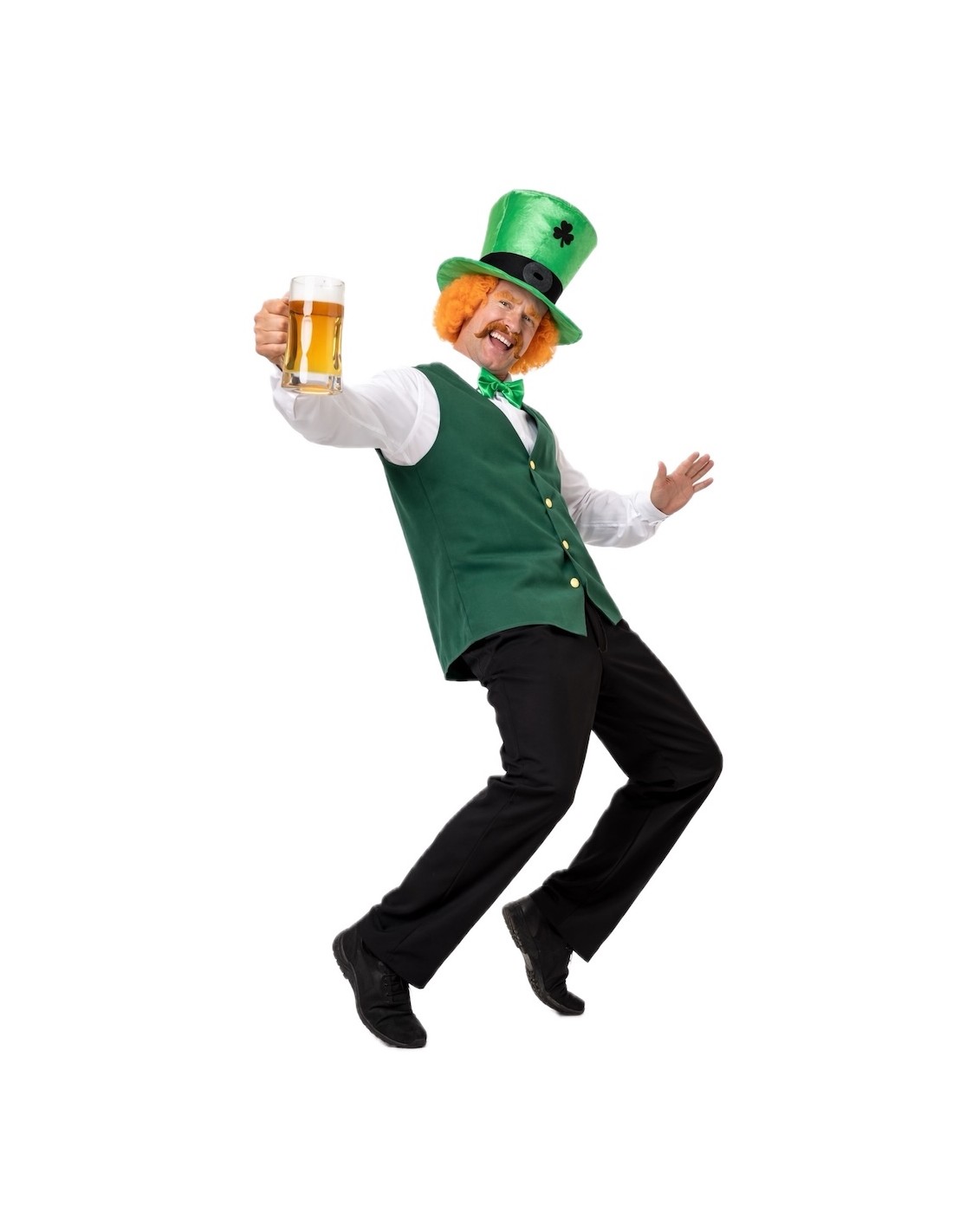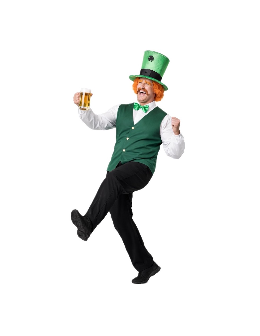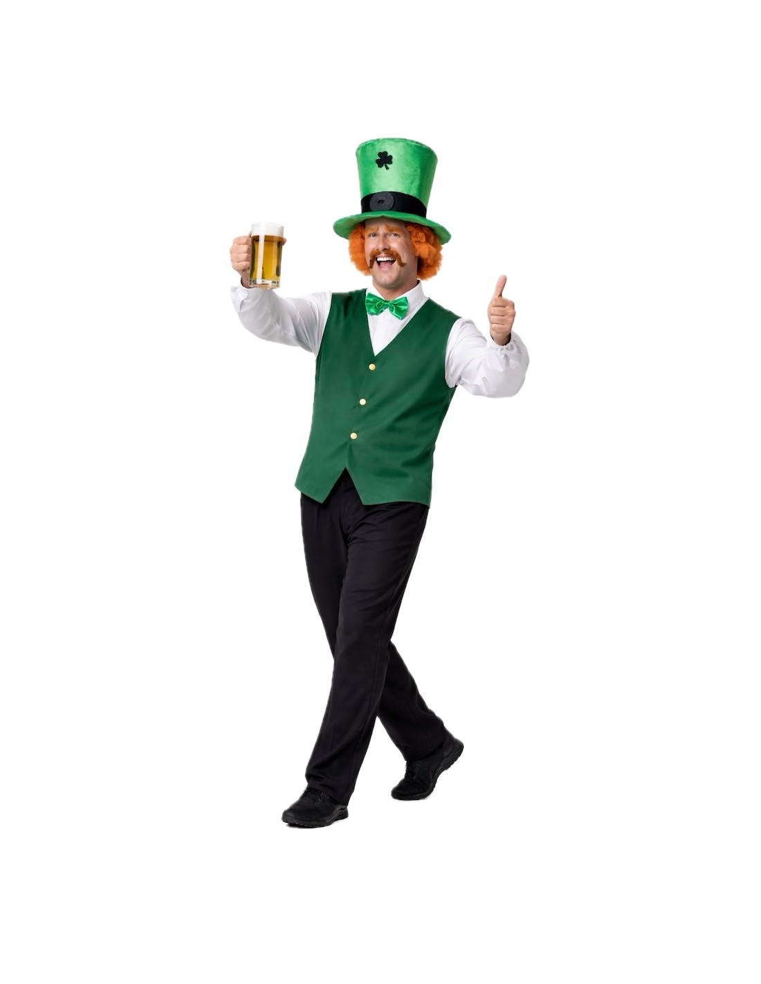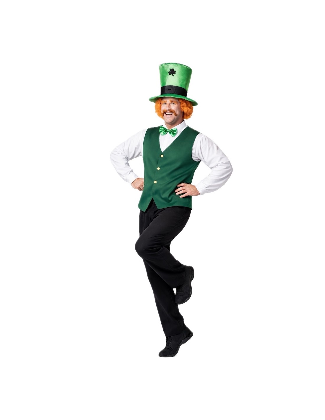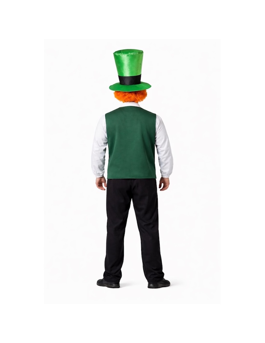 Costume amusant et confortable composé d'une chemise en polyester avec gilet intégré et fermeture en velcro qui simule deux pièces. Il comprend un nœud papillon en satin avec élastique, un pantalon en tricot doux avec taille ajustable et le chapeau caractéristique représentant le personnage, fabriqué en satin foanisé et doublé de filtre pour lui donner de la consistance et de la structure, évitant ainsi sa déformation, décoré avec des pièces de filtre.