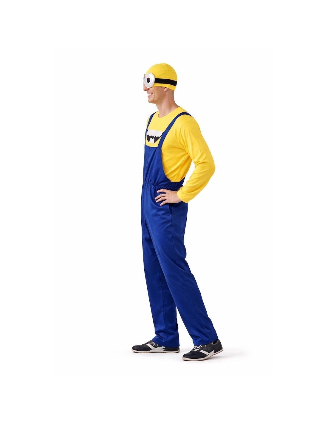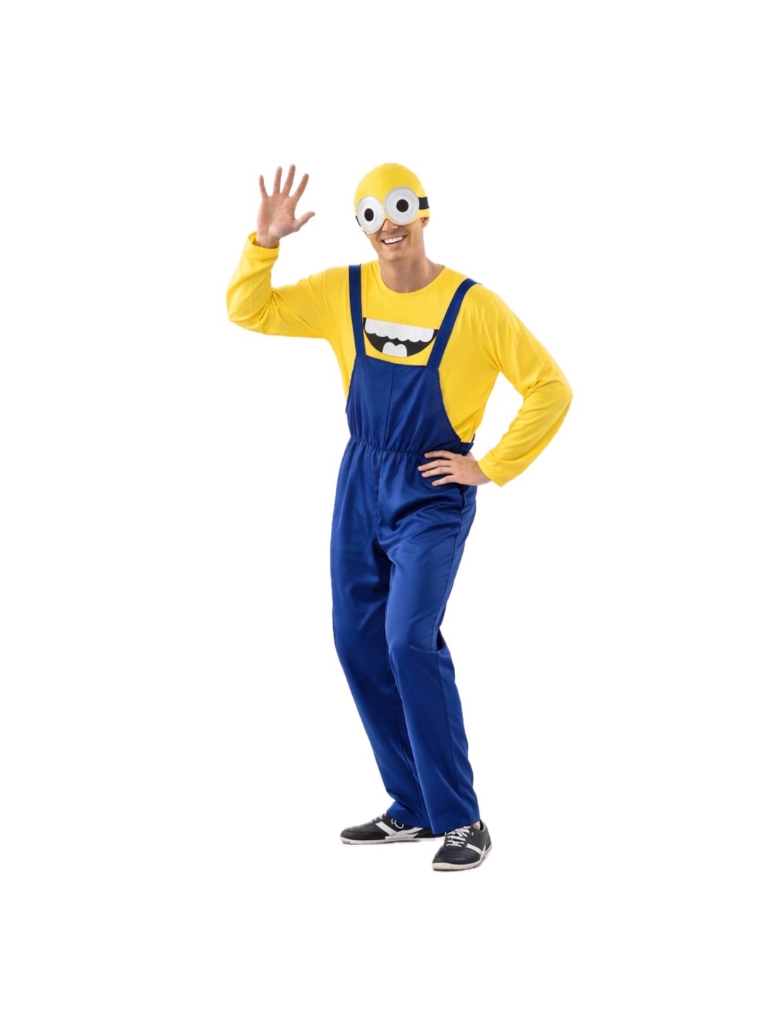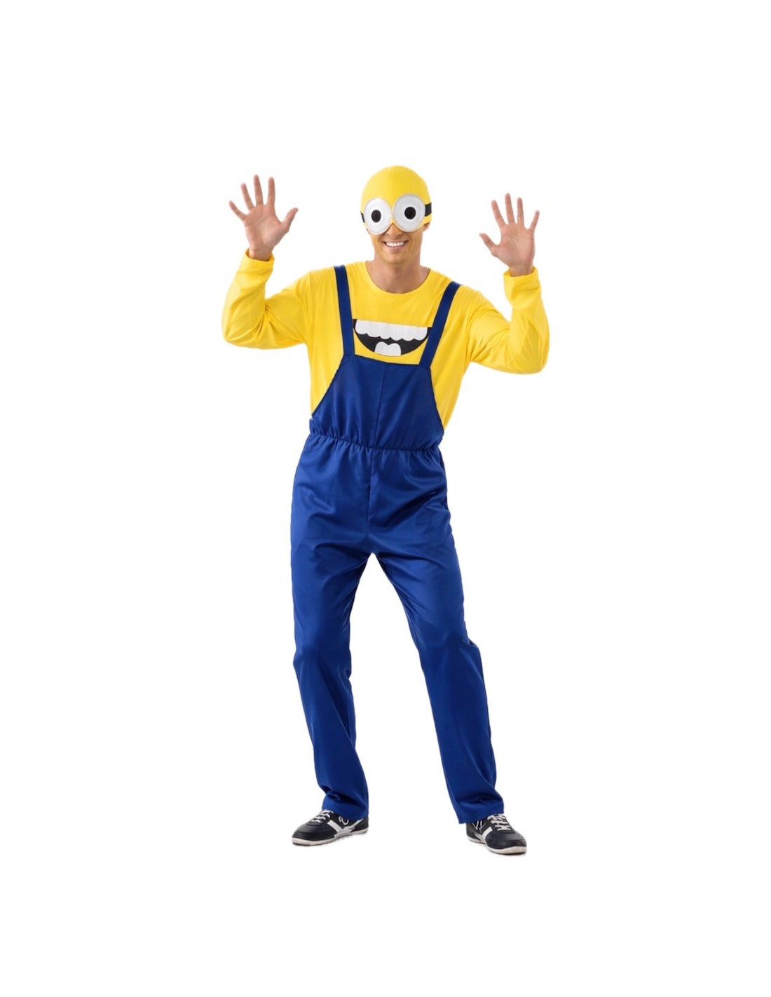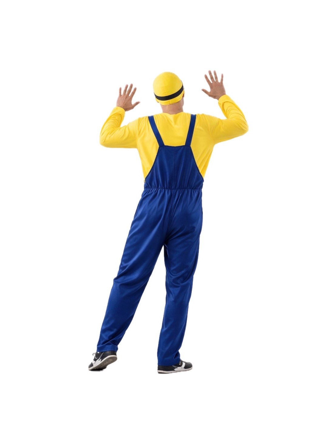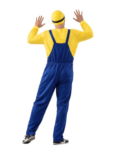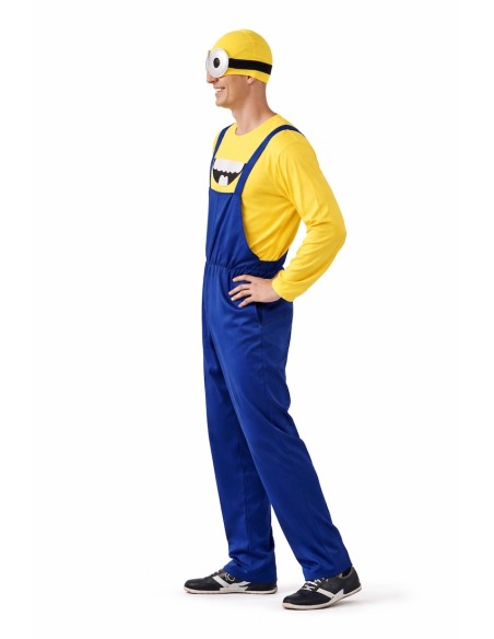 Ce déguisement de Minion comprend une combinaison en tissu jersey bleu épais, avec des bretelles ajustables dans le dos grâce à du velcro et une fermeture éclair invisible à l'entrejambe pour plus de confort. Il est associé à un t-shirt en tissu jersey jaune doux, avec l'impression caractéristique qui le distingue, ajustable avec du velcro dans le dos. Il est complété par un bonnet en tissu jersey rembourré pour conserver sa structure et sa forme, avec l'impression des yeux du personnage et des rubans noirs avec du velcro pour un ajustement parfait.