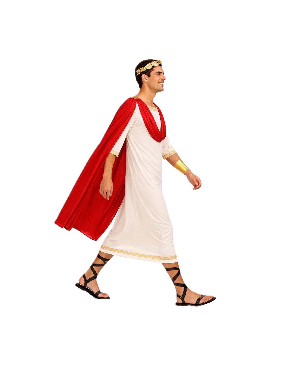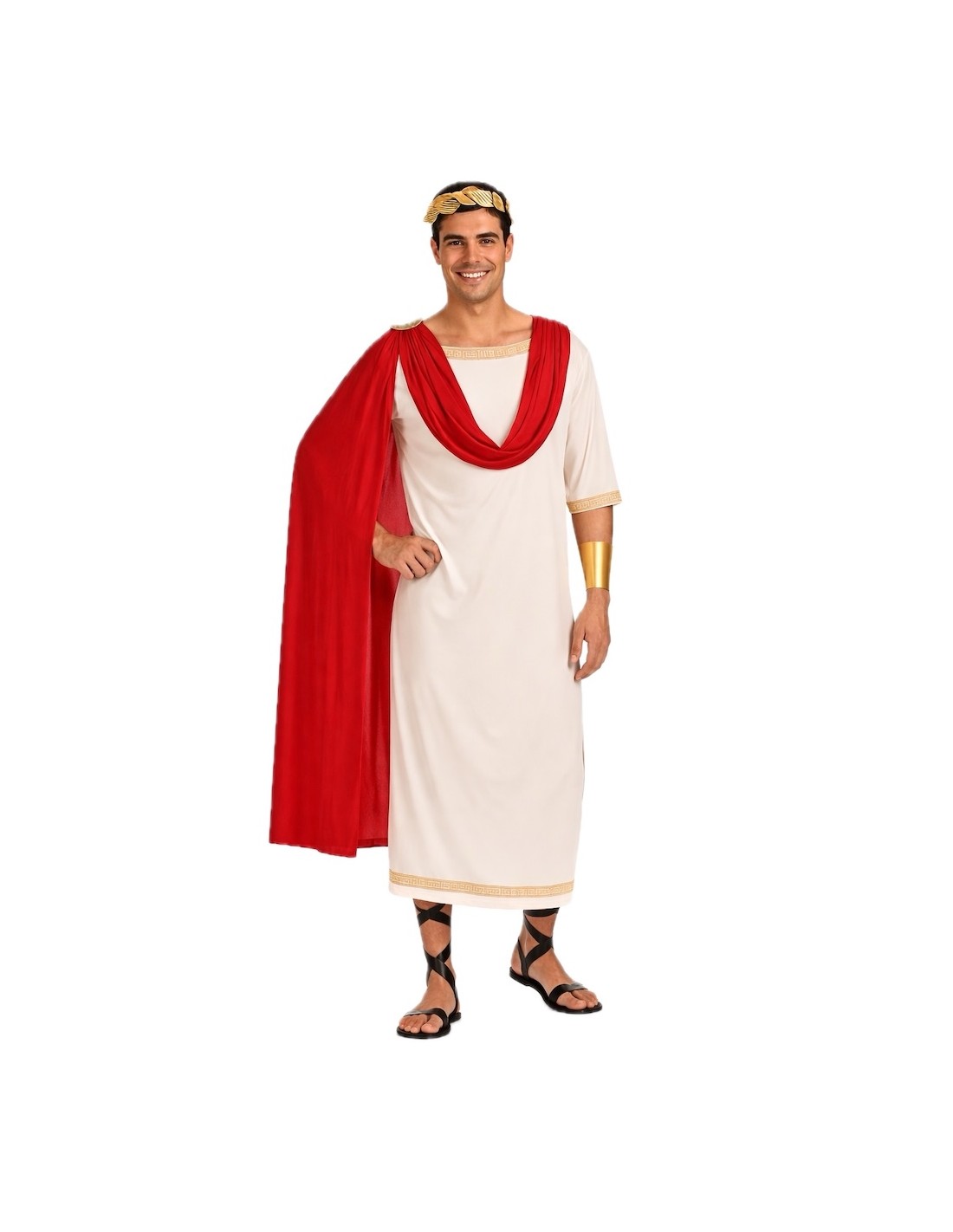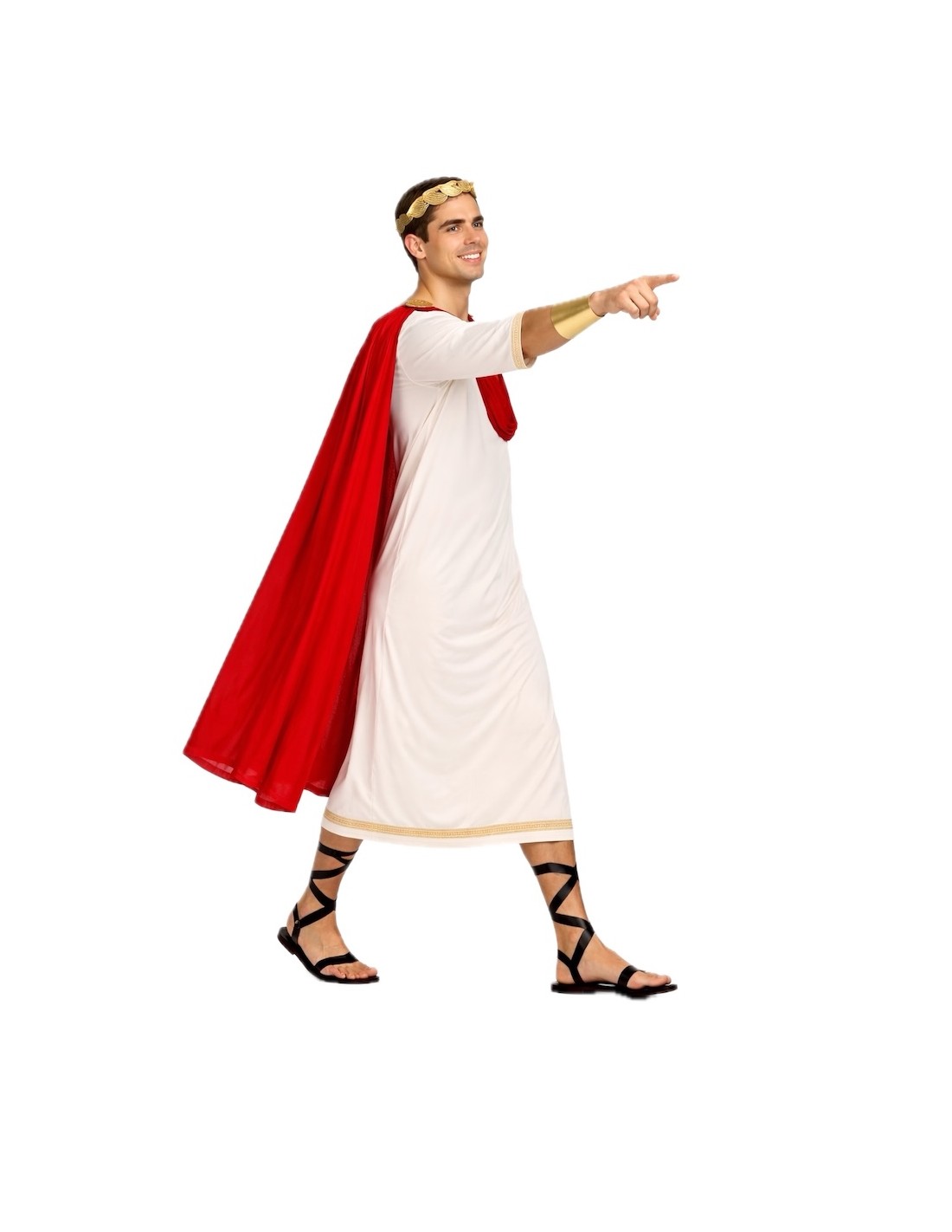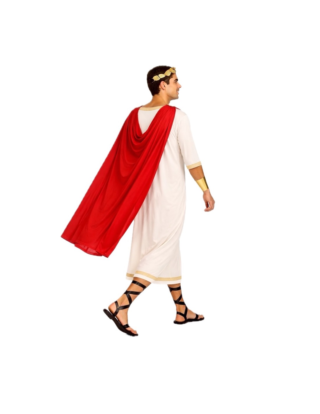 Tunique égyptienne de type kalasiris fabriquée en maille semi-élastique, avec une fermeture à l'arrière du cou par du velcro. Elle présente une décoration frontale avec un ruban de motifs hiéroglyphiques et des épaulettes avec des appliques dorées en mousse, rehaussées de plaques ornementales. Le vêtement est complété par une cape intégrée sur les épaules, fabriquée dans le même tissu, attachée de manière structurée mais indépendante, ce qui apporte de la dimension et de la mise en valeur à l'ensemble.