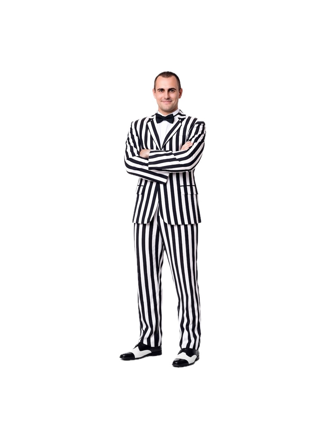 Polyvalent et élégant, ce déguisement de costume à rayures pour hommes vous permettra de vous transformer en personnages tels que , le célèbre personnage de film des années 80, avec son costume à rayures inimitable ; en le père d'une fille sinistre ; en un gangster des années 20 ou en un méchant extravagant.
